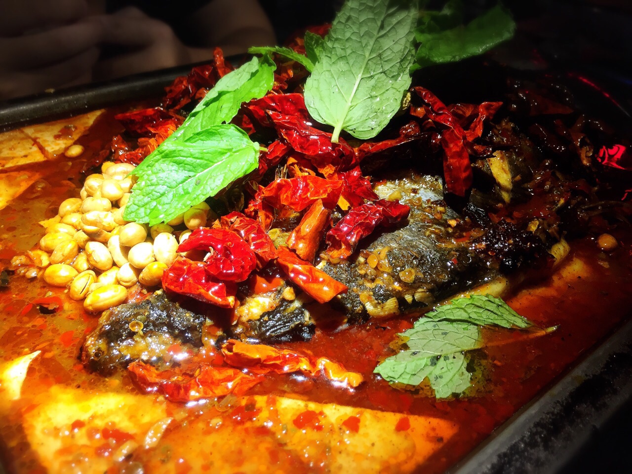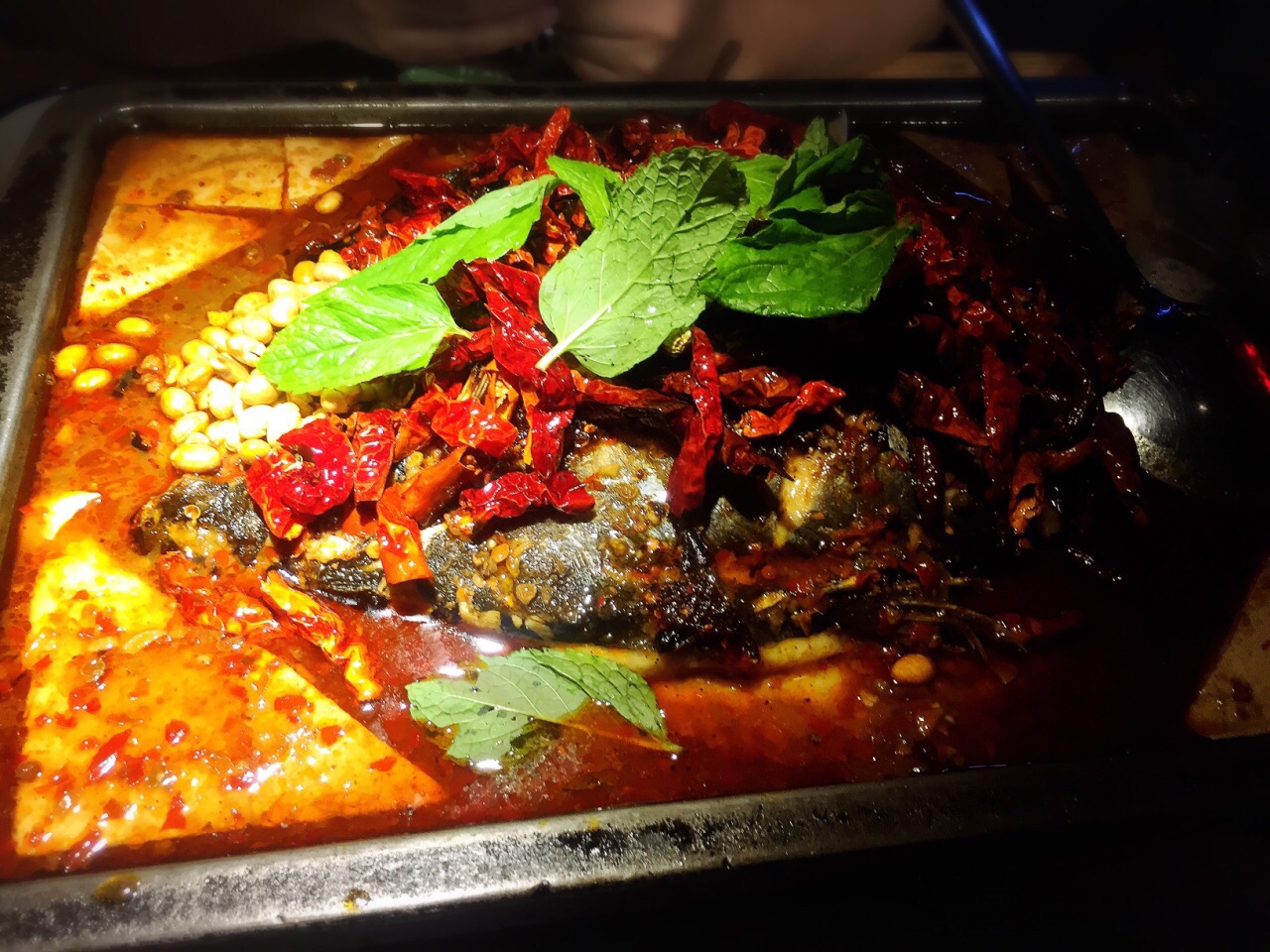 朋友一直心心念念想吃探鱼的重庆豆花烤鱼, 之前在钻汇广场吃过一次, 排队排的有点糟心, 在排队wei上看到这边不用排队,于是想说过来看看吧。 结果当时看到么人排队, 到了就小桌前面都有十几桌那么多了。 也是很郁闷。 于是也只能等等。 然后进去点了一份烤鱼, 上菜速度还算快, 服务态度也不错吧。 (,,•́.•̀,,) 就是鱼味道总体一般, 吃到最后很咸很咸, 觉得不如我在钻汇吃的好吃。 环境还是一如既往标准探鱼风。