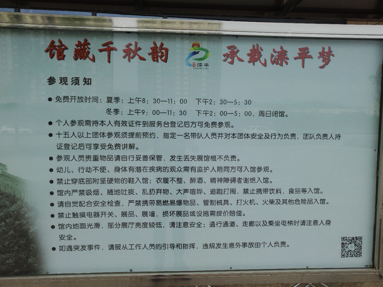 网友2018-07-14南山公园也值得一去。滦平博物馆选址已拆迁,新址在山戎公园里,目前在装修。可以先去滦平城市展览馆参观滦平博物馆选址已拆迁,新址在山戎公园里,目前在装修。如要前往请电话联系,确认后再去。可以先去滦平城市展览馆参观。南山公园也值得一去。