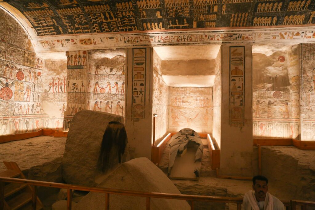 陵墓保存的很完好,墙壁上的壁画描绘了法老日常的生活场景,对于研究古埃及的历史非常的重要纳芙塔蒂陵墓是帝王谷中对外开放的一处法老陵墓,它属于古埃及早期在帝王谷入葬的陵墓。陵墓保存的很完好,墙壁上的壁画描绘了法老日常的生活场景,对于研究古埃及的历史非常的重要。