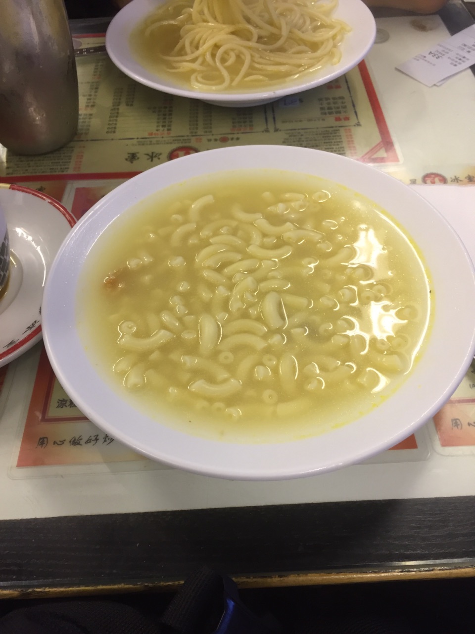 小小的冰室居然要在门外轮候入座,真的不简单。店内地方浅窄,通道只能容一个人经过,坐得极不舒服。再看墙上贴满名人的照片,才知道是明星店铺。没吃他们的招牌菜,只吃了一个常餐,份量十足,通粉的汤很清甜,炒蛋更是佳作,只可惜座位狭窄,极不舒适。