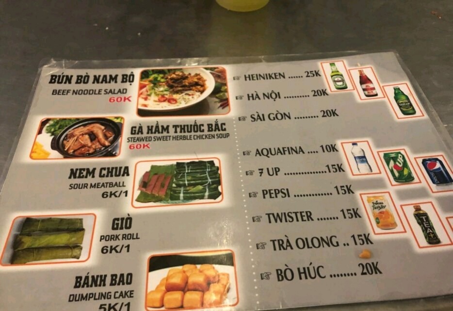 ...饮料都是15000越南盾,在三十六街还算便宜的,味道算不错,牛肉很滑,饮料大路货色,环境一般般河粉类都是60000起,饮料都是15000越南盾,在三十六街还算便宜的,味道算不错,牛肉很滑,饮料大路货色,环境一般般。