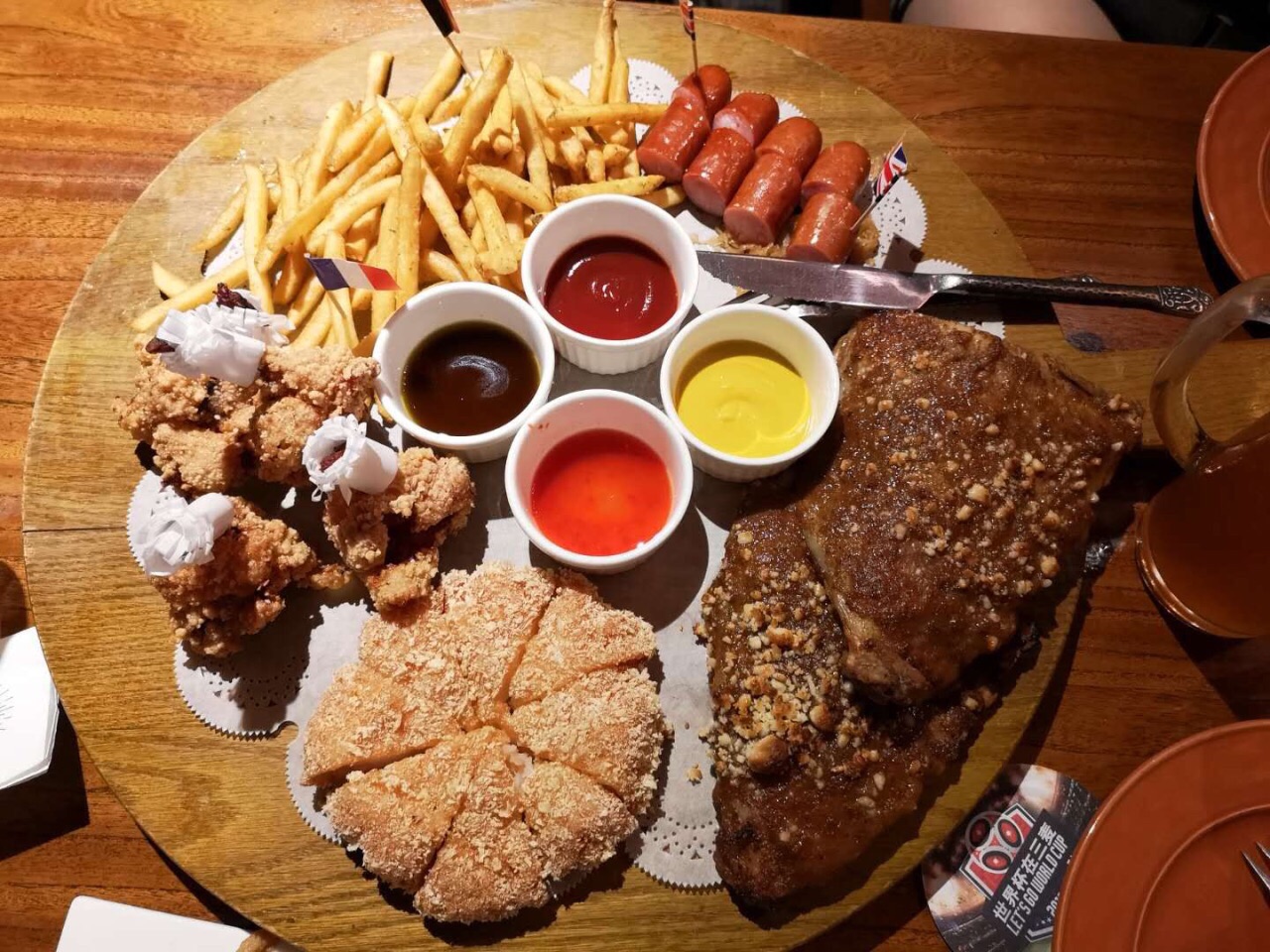 非常喜欢这种西式的餐厅 又有点类似简餐 有不失高雅 偶尔可以装逼一下 小食拼盘真的可以一下子满...非常喜欢这种西式的餐厅 又有点类似简餐 有不失高雅 偶尔可以装逼一下 小食拼盘真的可以一下子满足各种味蕾!4种蘸酱可以自由排列组合 吃出多种口味 牛排也很嫩!