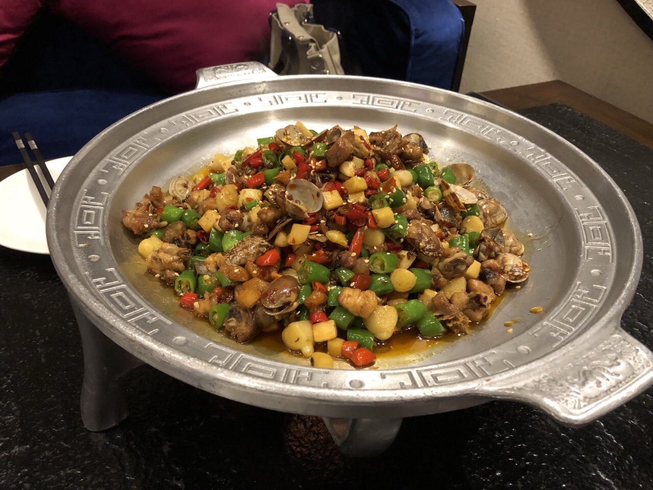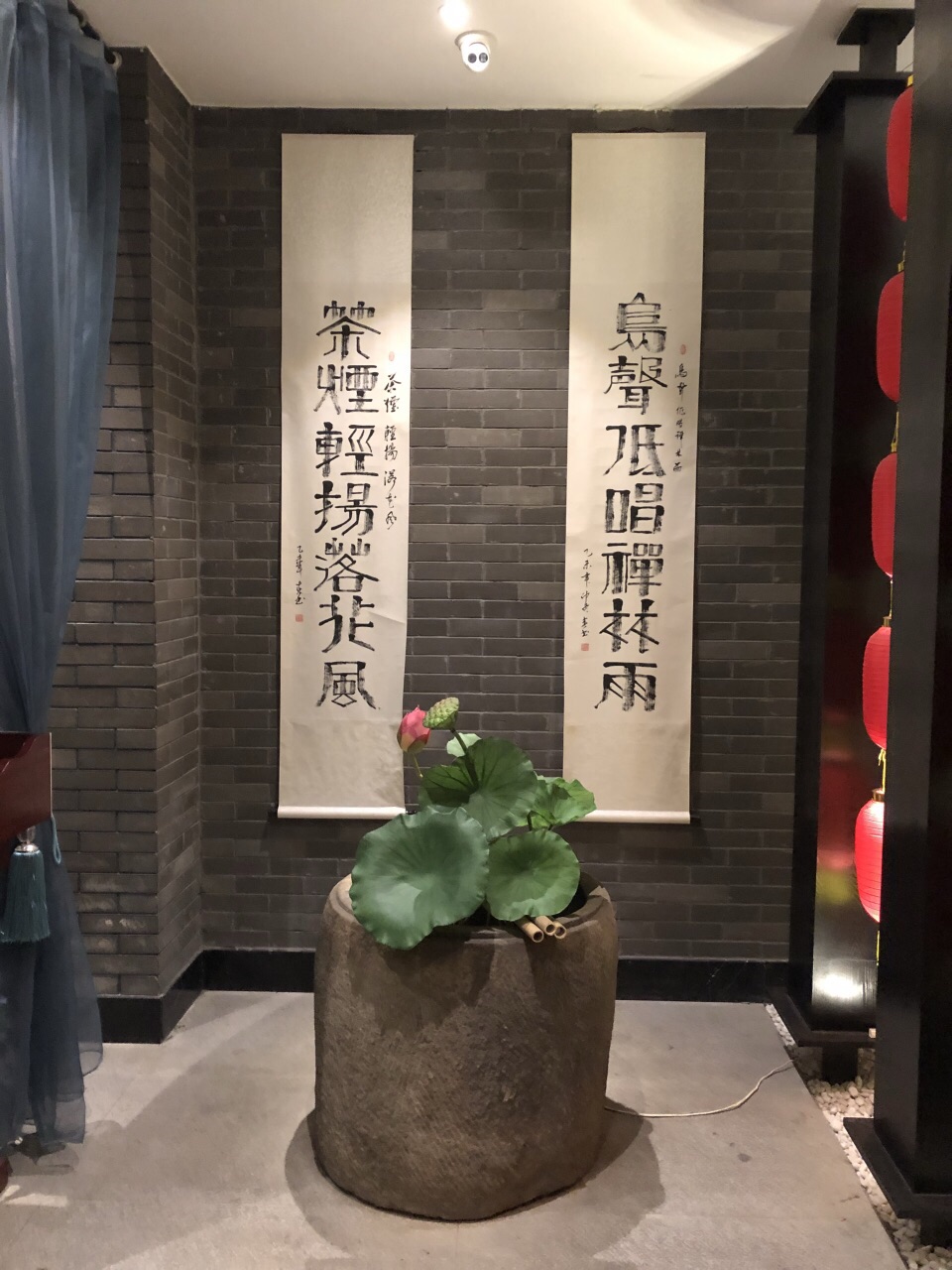餐厅的门小不起眼,从门前路过不注意还真不知道有这么个餐厅。邻街只有一步电梯,从电梯上来后才发现这家餐厅还不小。装修风格很有文艺范,里面七拐八拐的长长的通道,通道两边是包间和卡座,好家没有一般意义上的大厅。锅儿芦花麻辣香鲜,就是里面的鸡块切太小了,锅烧手工豆筋非常值得推荐,香味浓郁,筋道口感好,番茄元子汤看起来不错却不合我的味口,米饭真好吃!