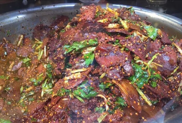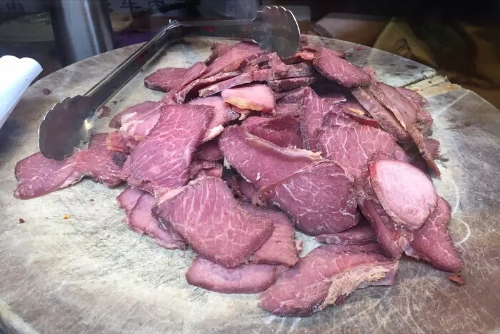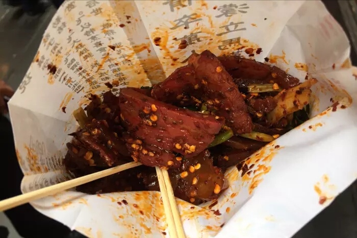 锦里里面的老店了,十年前就有。牛肉有原味和麻辣拌两种,买了麻辣的,不算太辣,辣油的香味更多。估计原味的也会很好吃吧。 价格真心贵,不过应该是真的牛肉,满满一盆,显得还是很满足的,不过暴露在空气中,人来人往,还是应该改进一下。