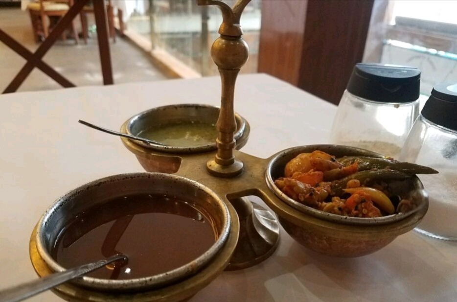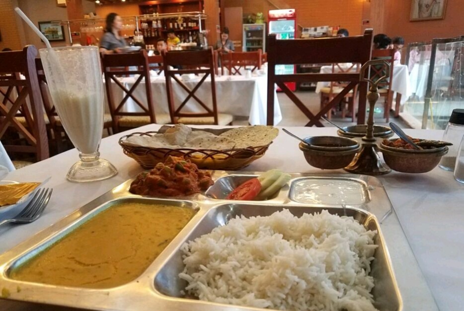 网友2018-07-17...不多,里面的印度菜比较简单,就是饭和咖喱,还有两个饼,印度奶茶可以试试,咸味的,有点西北的风格印度风味的一家餐厅,中午的时候人不多,里面的印度菜比较简单,就是饭和咖喱,还有两个饼,印度奶茶可以试试,咸味的,有点西北的风格。