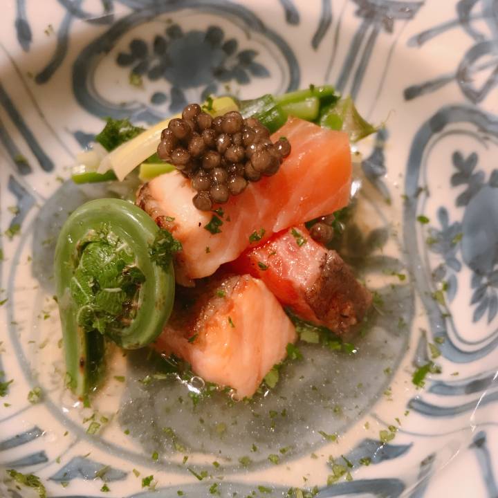 虎白三星米其林餐厅,最好的状态是渐入佳境,东京吃过的好餐厅有一些了,虎白会想让人下一季再来。朋友说其实发挥有些不稳,但这种不稳和不断尝试真的是目前最喜欢的感觉呐~ 从开胃菜到冷物、煮物、烧物、炸物、主食,到压轴甜品共十道菜的一人套餐,在溪花禅意氛围中,边品尝精致这物那物,边欣赏和式陶艺摆盘美术,买单17000日元!好值!值得一去!