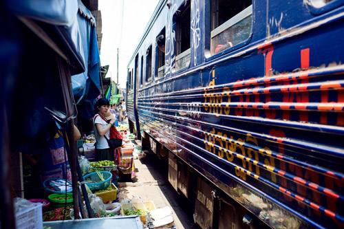 ...车经过,火车通过的时候,摊主必须将挡住火车的遮阳、货架收起来,等火车通过后再摆放回去继续做生意