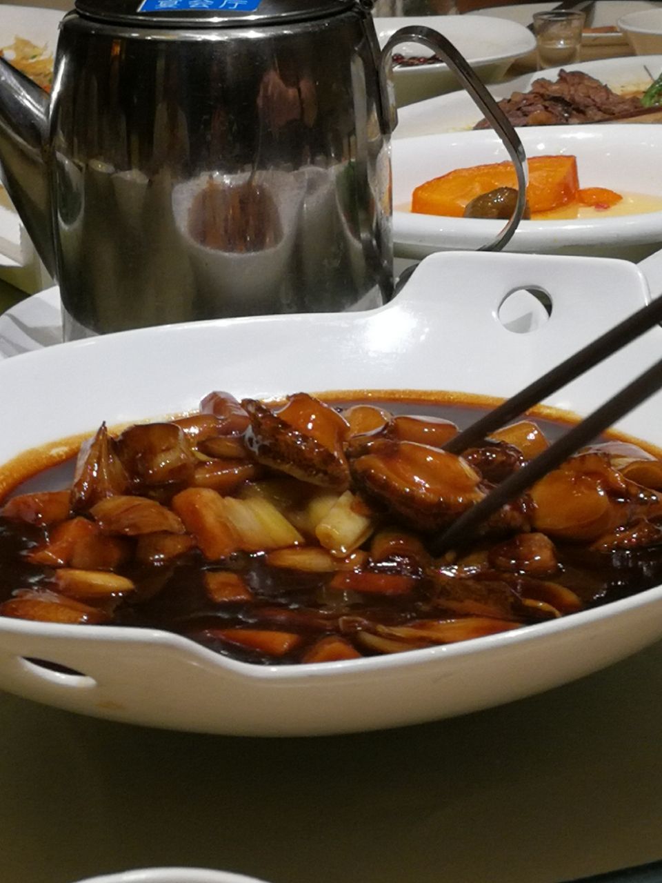 顺风大酒店这次是去吃正餐,在五角场悠迈生活广场(原东方商厦)五楼,只有一部小电梯,要等。包厢不大,主要是粤菜和本帮菜,脆皮乳鸽皮香肉嫩很赞,草头圈子中规中矩,草头不老圈子实在,炝腰花没有腥气很嫩,小米煨海参蛮大份的放在竹盒上,可以几人分食,海参与小米炖的融合,很滋补,就是价格小贵。开背虾配丝瓜粉丝清清爽爽,红焖鲍鱼个头不小,清蒸笋壳鱼有广东水平,火候恰到好处,招牌红烧肉是标准的本帮做法,浓油赤酱微甜不腻。总之菜品的质量基本有保证,没有什么不愉快的事情发生,吃的还是比较尽兴的,可以自带酒水。