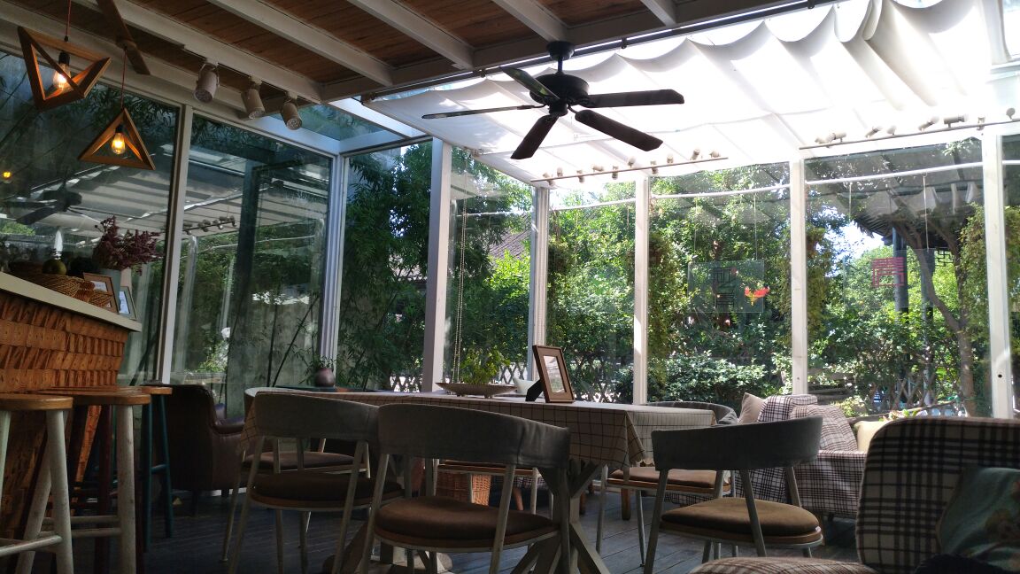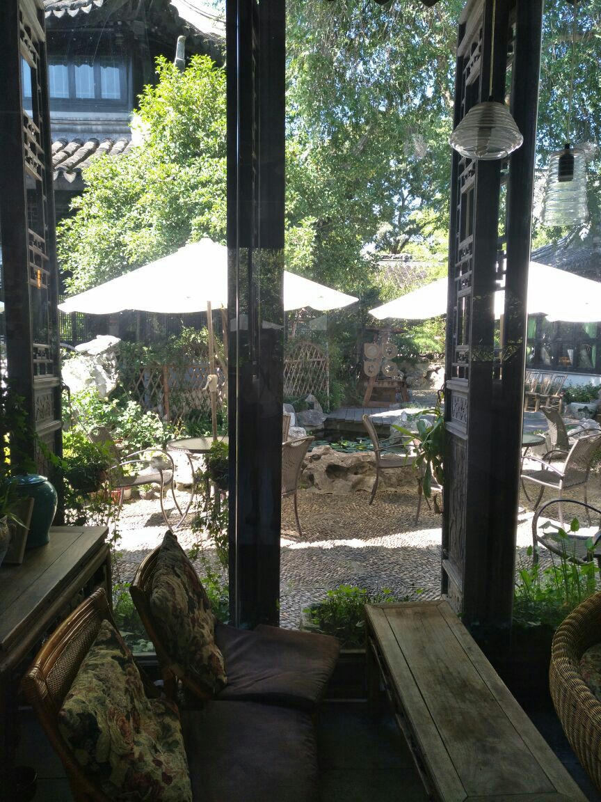 位置绝佳啊,除了上次在虎丘的冷香阁之外,这是第二家我觉得很不错的另类观景地。和虹饮山房就是一体的啊,连隔墙都没有。有个小庭院,落地玻璃窗可以清凉地观赏院内和虹饮山房景色。有充电的地方,有WIFI ,喝的有中西古今各种各样,10-15左右就能享受到。相当不错了。