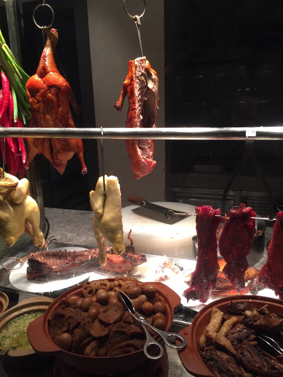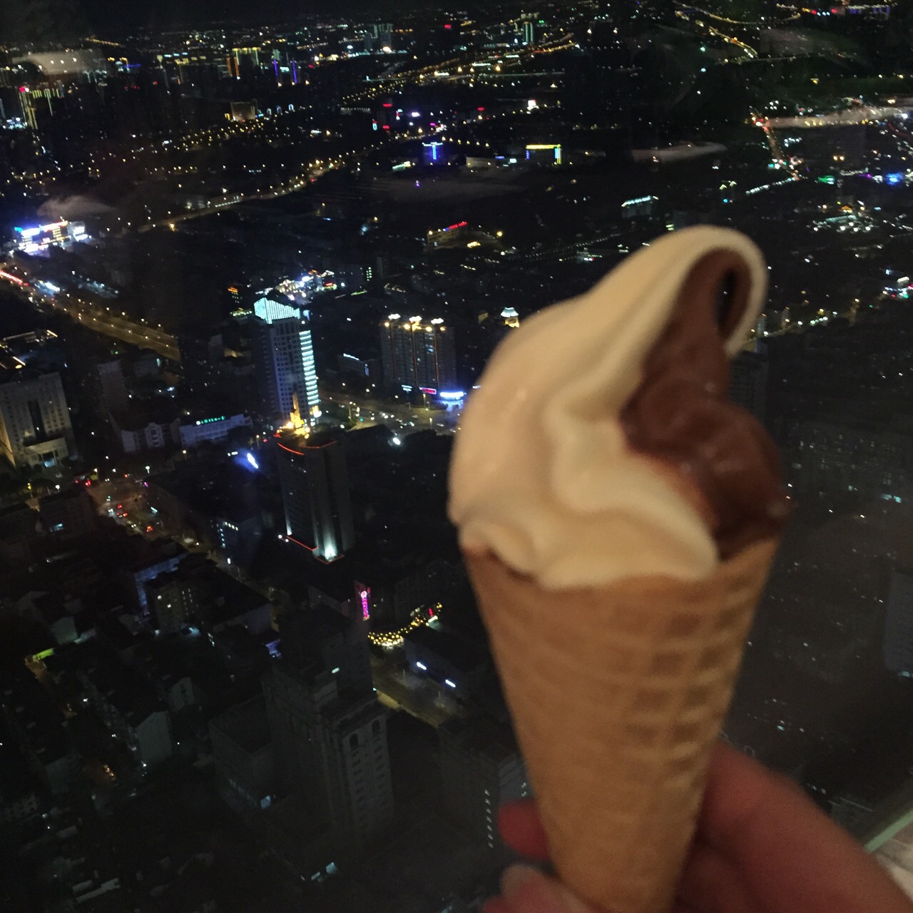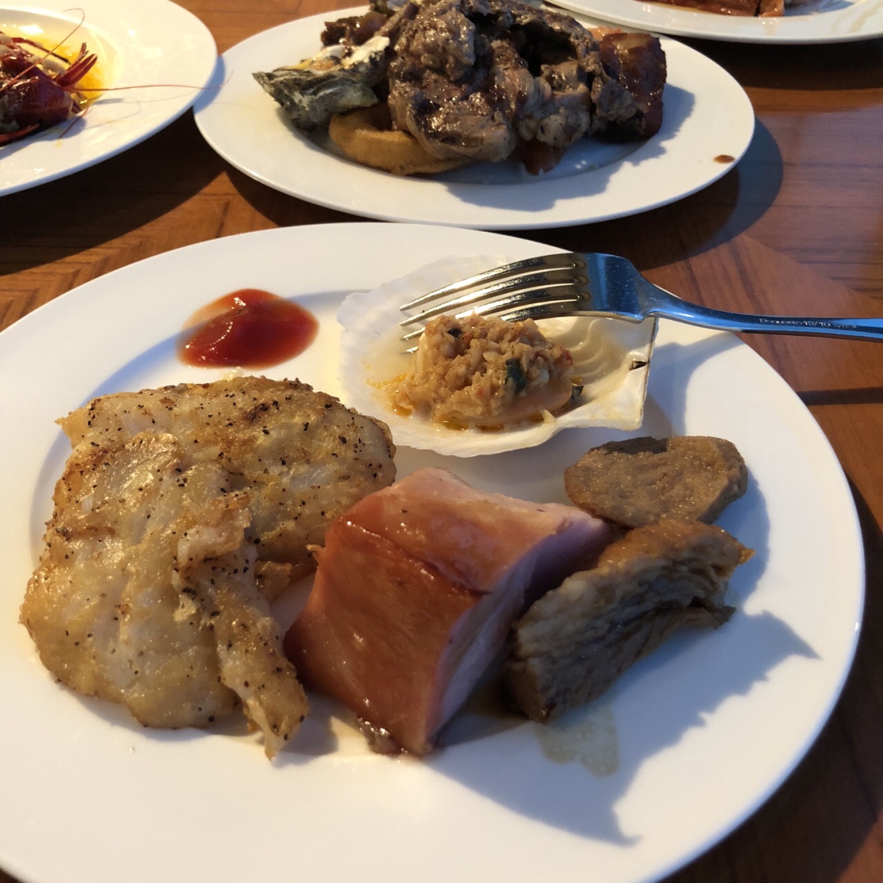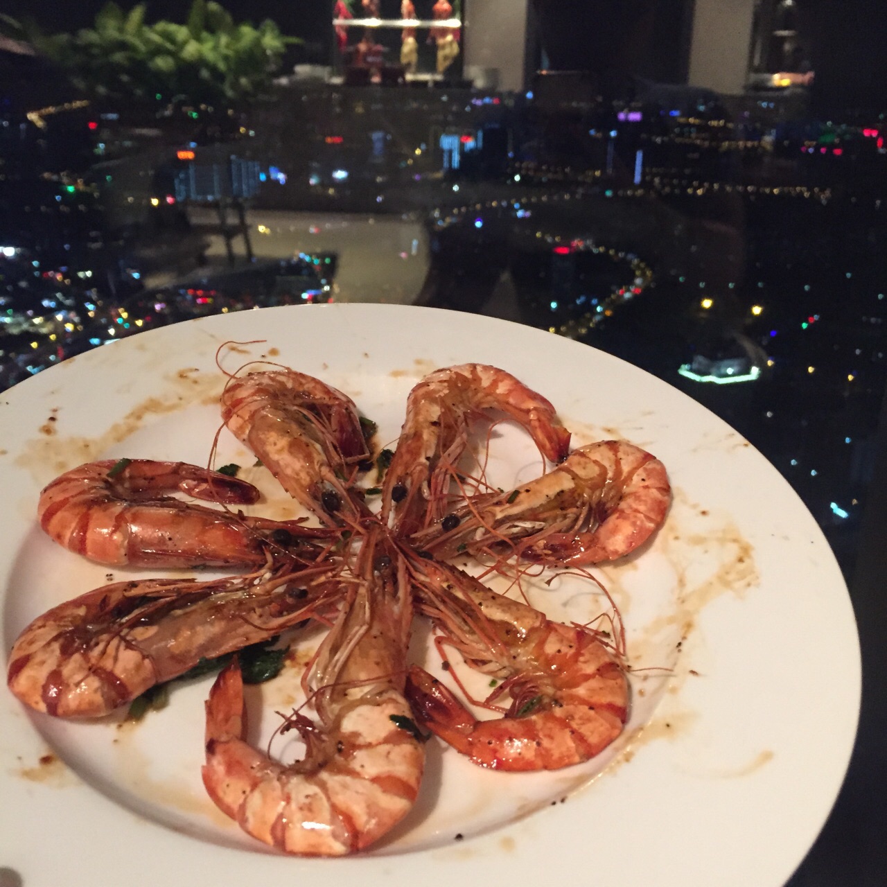 在64层高楼俯瞰锡城最繁华的景象,视觉上的享受远胜于味蕾的刺激。 从电梯出来就是咖啡厅了,前台引导入座后就没人管你了,自觉点取餐吧,别像我一样傻坐着。对了,没人帮你铺餐巾,毕竟不需另付服务费的。 俯瞰市中心的感觉很棒,登高望远,心旷神怡,更多表达不出的自行感受。 菜品数量不多,质量还行,比预期的稍好。 烤羊排肉质嫩,筋有点多,味道较淡,需蘸佐料; 刺身新鲜,三文鱼肉质肥美,鲷鱼口感清爽,北极贝爽脆,扇贝吃起来软糯; 小龙虾个头很小,肉质不紧实,感觉不太新鲜,没有评论的那么好。 铁板虾个头很大,闻起来像海虾,肉质紧实,酱汁味道好。 烤鸭是雷区,鸭肉油多、肥肉多,鸭皮不脆,肉质偏甜。 烤生蚝味道鲜美,个头小了点; 甜品随便选,感觉每一种都好吃,刷完一遍蛋糕冰淇淋,三文鱼就有点吃不下了饮料种类太少,没有鲜榨果汁,还好橙味气泡水比较清爽。 总体感觉还行,为了环境可以二刷。