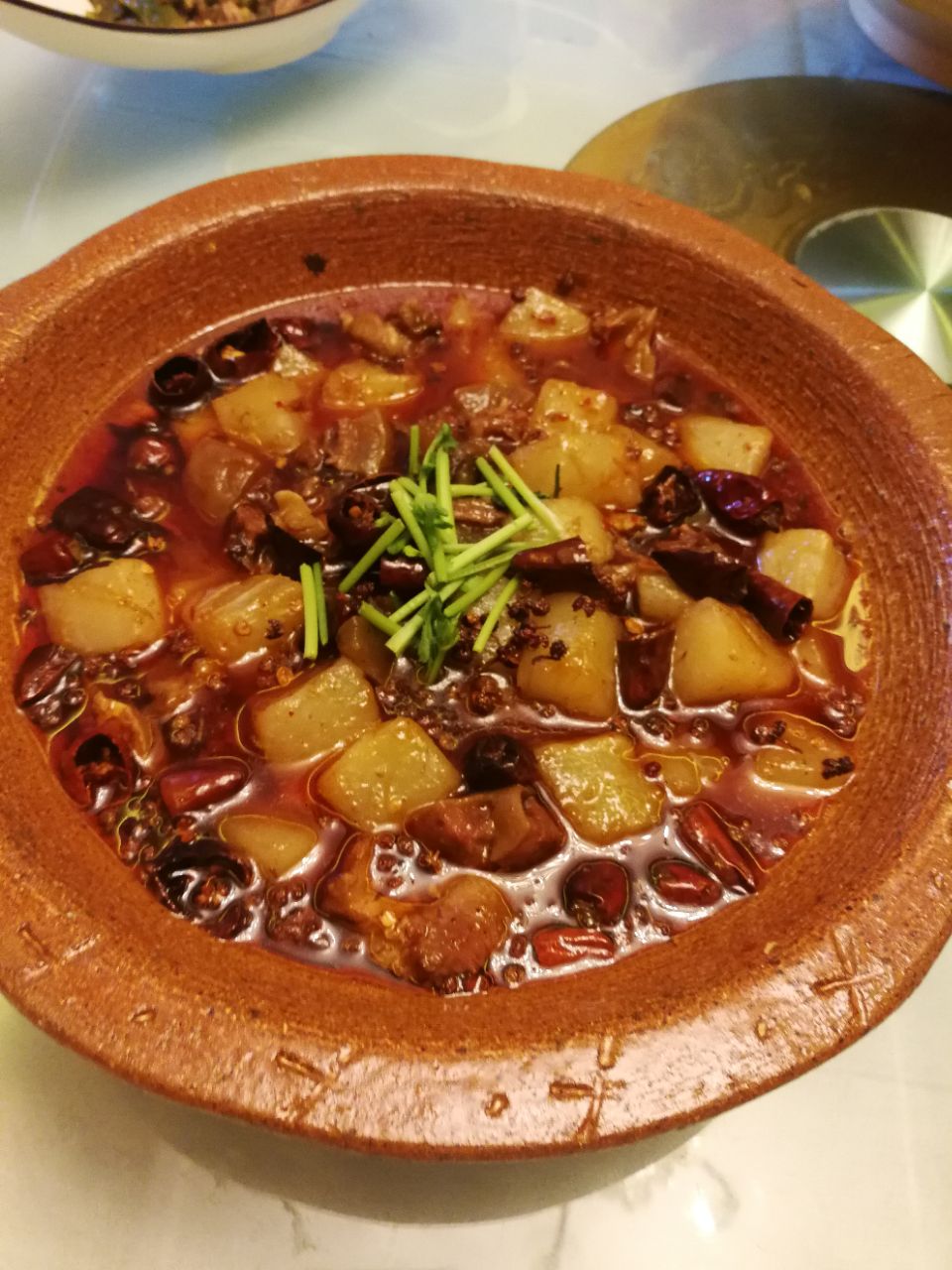 两江丽景中餐厅在地下一层,靠嘉陵江一侧是有门窗的,大厅很大,放30几桌,可以办婚宴和单位团餐。菜品以川菜为主,也有高档的海参鲍鱼等等,感觉大厨师傅水平下降了。做的菜不是老就是口味有差,水煮鱼的干辣椒基本都发黑,花椒鸡的鸡块炸的老了,牦牛肉萝卜煲还行,牦牛肉软糯胶质多,凉菜腰花中的青椒品相不佳,全都软塌稀烂。与前几年相比退步不少,大失所望。
