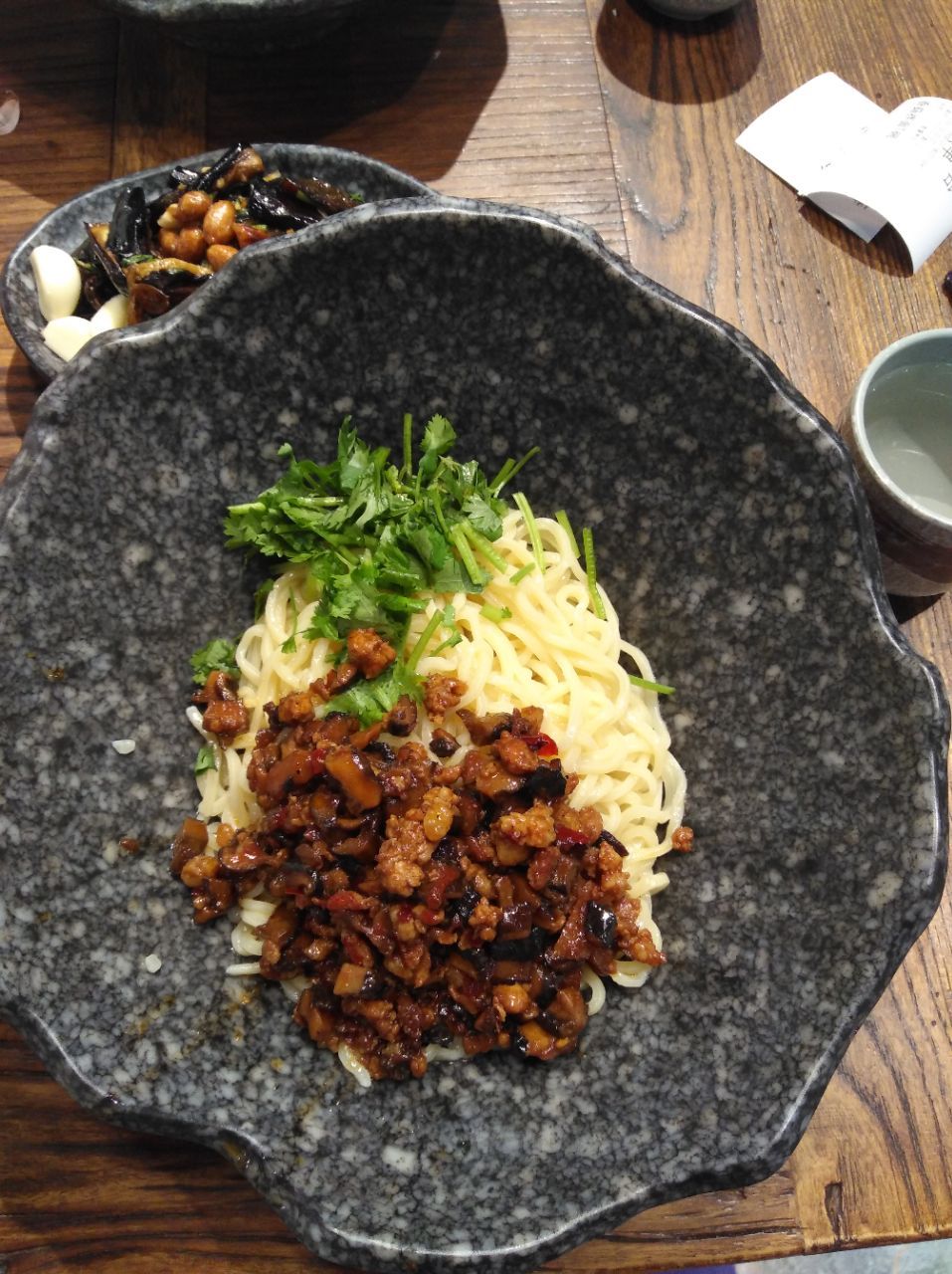 这家店与搜串在一个大厅里,既可以吃面又可以吃烧烤。天热中午来吃面,点的牛杂面,奶白色的汤好喝,牛杂炖的软烂好吃。香菇酱拌面也超级棒,是甜咸口的,香菇粒肉丁大,满嘴香。面条统一的,很劲道。凉拌茄子也好吃,咸淡正好,空嘴吃或拌面里都很搭,赞!