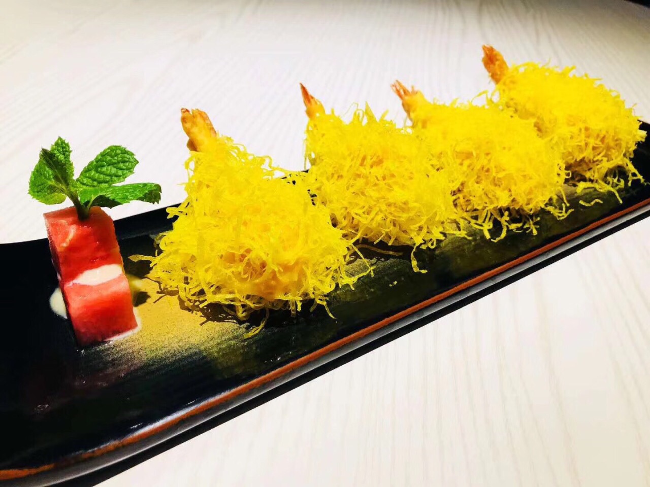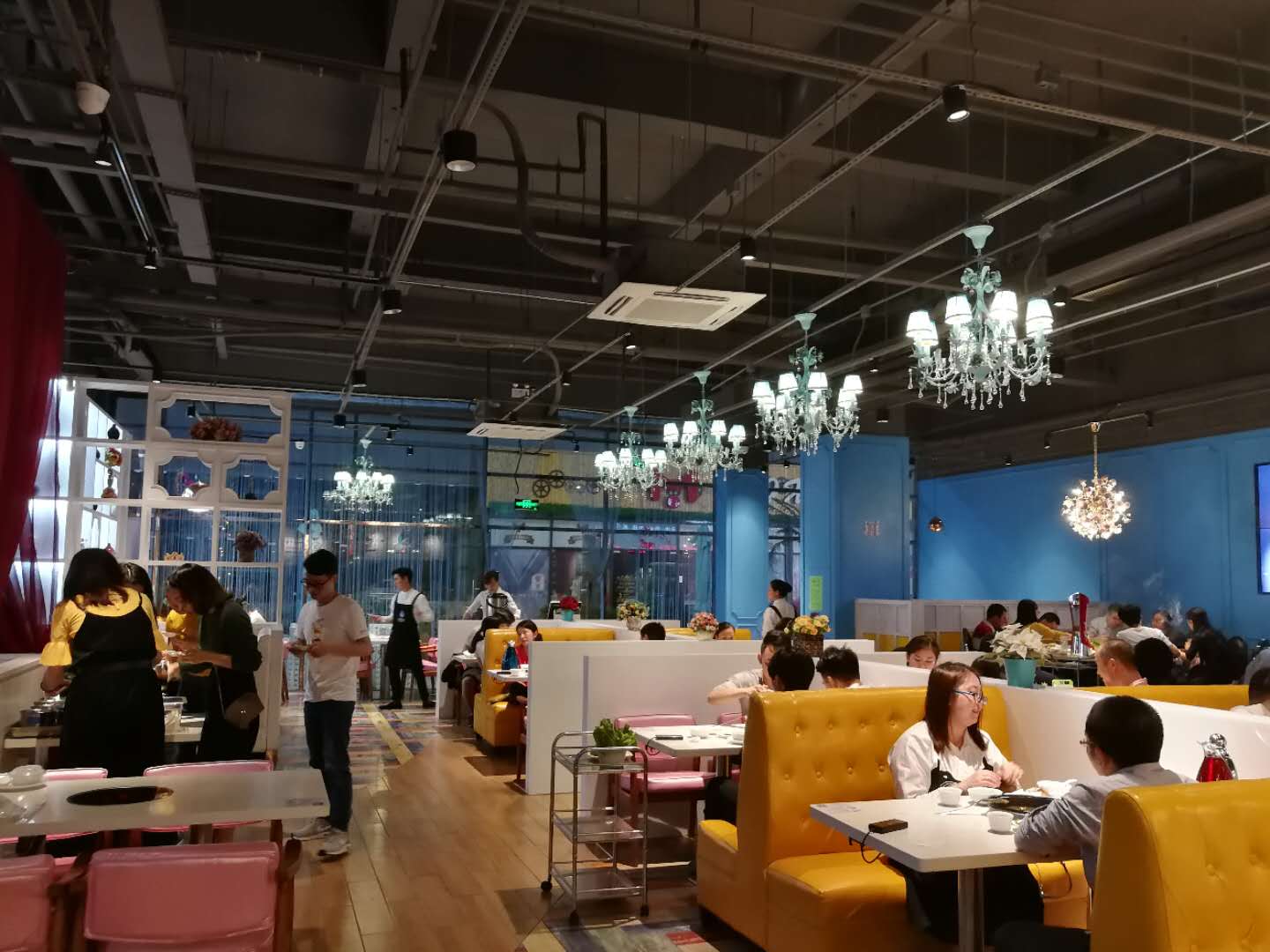 这是在机场对面后瑞地铁口出来左转100米的一家创意川菜音乐餐厅,户外像花园一样,店内环境很优美,很时尚,蓝白色的格调,搭配艺术画和唯美的花灯与花式,简直就是一个花的海洋,还有大屏幕音乐播放,即使坐着喝杯饮品也是一种享受。 菜品很丰富,有六十多道,味道也很正宗,老坛子酸菜鱼,蓉玥藤椒鱼和沸腾鱼都很好吃,还有松鼠鱼和吊烧乳鸽适合不吃辣的,颜值也很高,他们家口水鸡、毛血旺都好吃,尤其是蟹黄豆花羹、醉爱红烧肉、至尊金丝虾和川味凉面可以按位点,小两口可以按需点,完全不浪费。 另外晚市还同时有烧烤,听说师傅是个名厨出身,有两种口味麻辣和蒜蓉小龙虾,羊排、台山大生蚝及各种烤串,国外的各种精酿啤酒和饮品,简直嗨翻天了。 服务员颜值也很高,服务也不错,整体消费价格像商场一样,非常实惠,适合朋友小聚,家庭聚餐,团体活动,给老板赞一个!