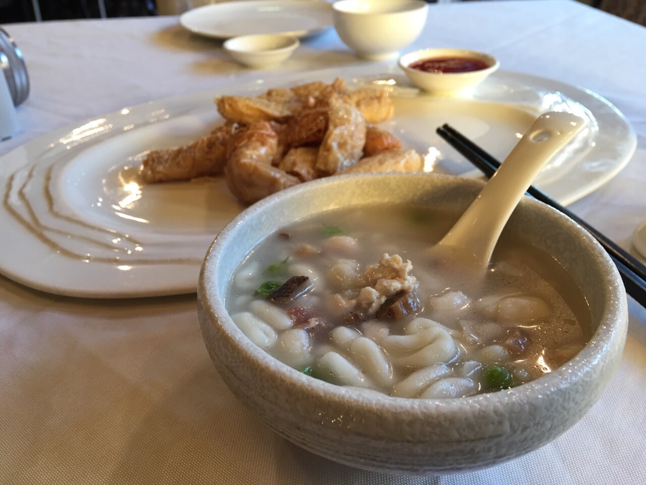 店的位置很好找,在南宋御街附近,逛完直接可以来这边用餐,点了几样菜。定胜糕嘛,一般般不是很好吃