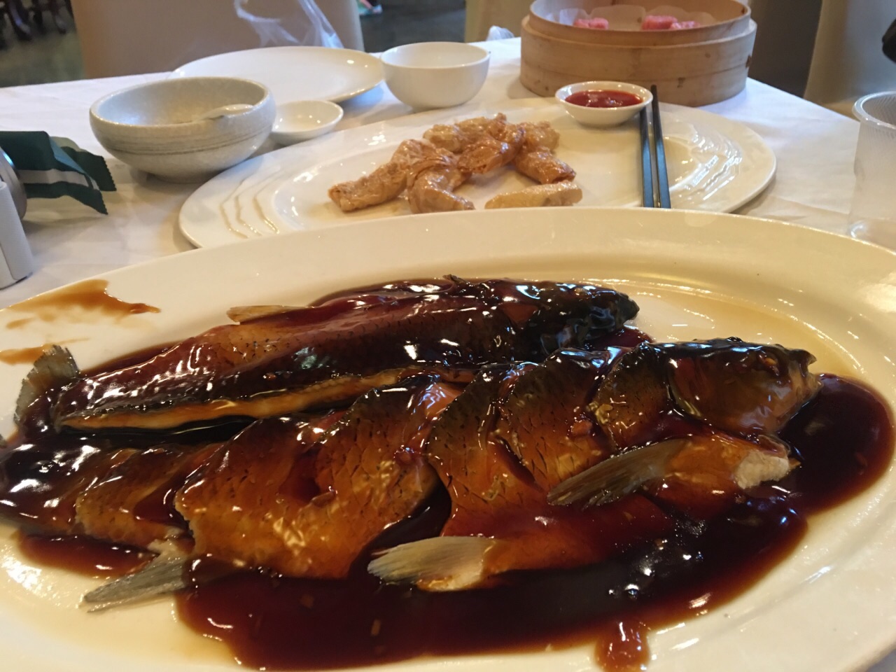 店的位置很好找,在南宋御街附近,逛完直接可以来这边用餐,点了几样菜。响脆就是炸油豆皮卷,沾番茄酱吃,稍微有点腻,但是做小零食还是不错的。猫耳朵好小一碗稍微有些贵,不过是味道还可以。定胜糕嘛,一般般不是很好吃。呐,西湖醋鱼是必点的,味道真的不错,咸酸适中,鱼肉软嫩,就是草鱼刺太多,建议点其他种类的鱼。价格也都不贵,我一个人点了这些,如果两个人也是够吃的,价格也比较实惠,人均80左右差不多,整体来说还是不错的~