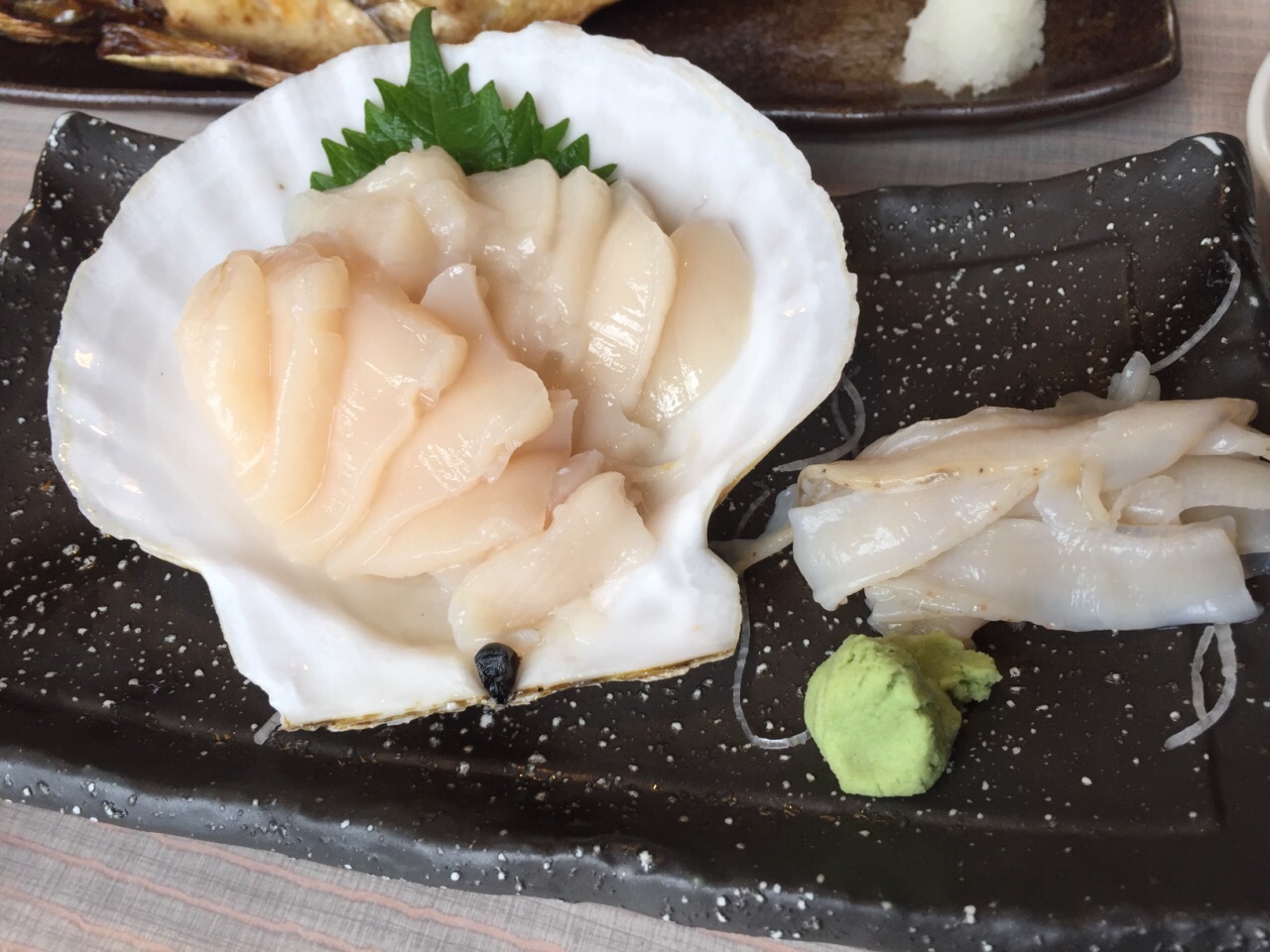 因为就住在函馆朝市正对面,一大早就跑到朝市买好坚蟹,到二楼二番馆吃早餐去了。活蟹是市场买的,处理得贴心,其它都是直接它家点的,味道鲜美,虽然种类不多,但比东京的筑地市场要便宜,而且更新鲜。特别推荐活扇贝刺身,算起来才三十多rmb一个,赞!