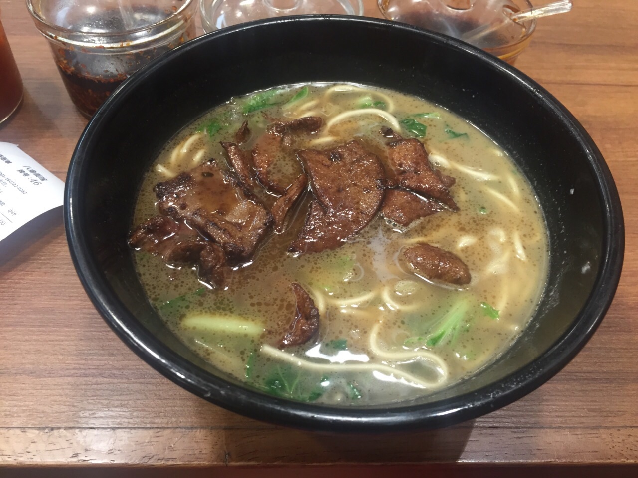 面很大一碗,量很足,但是猪肝炸过头了,有股焦味,面有点生,汤的味道比较淡