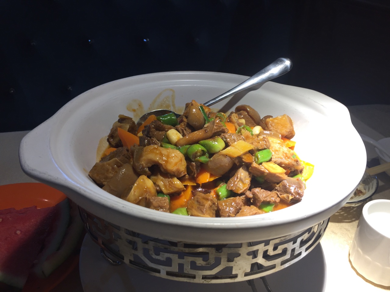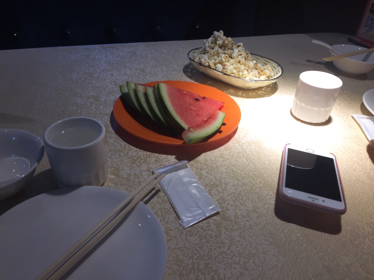 这家店在华宇购物中心的地下一层,门口有个牌子,还是很好找的。这家店的门脸不是很大,但是里面很深,座位很多,多为沙发座,还有一些绿植,环境比较小资,看起来心情舒畅,但是外面热的时候里面的空调不是特别给力。 他们家的服务必须给个赞,饭前有西瓜和爆米花提供,因为知道我们比较怕热,还为我们提供了电风扇来降暑,还送了酸梅汤,主动换盘子,都十分贴心。 滋补驴肉是我吃过最好吃的驴肉,驴肉炖得很烂,分量很足,瘦肉很多但同时也会有一些肥肉和皮来提升口感。调味很好,味道十分浓郁也非常好吃。 口味猪蹄炖的程度恰到好处,不是最软你,但是火候把握得正好。味道口感都十分棒,让人吃起来就停不下口,小份的猪蹄的量也很大。 蟹黄豆腐不太推荐,味道很淡,稍微有点腻。