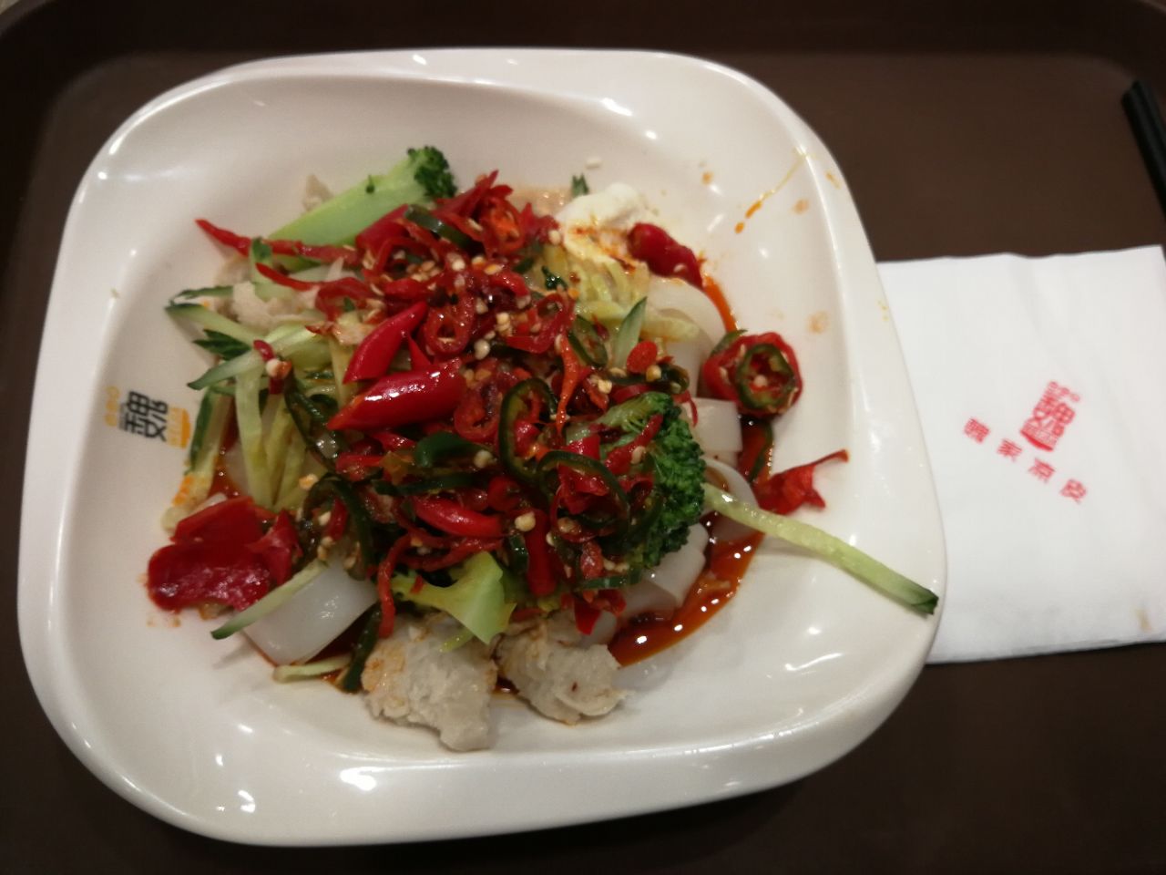 天水火车站前这家魏家凉皮的秘制凉皮好吃,有点辣,价格11元,不高。