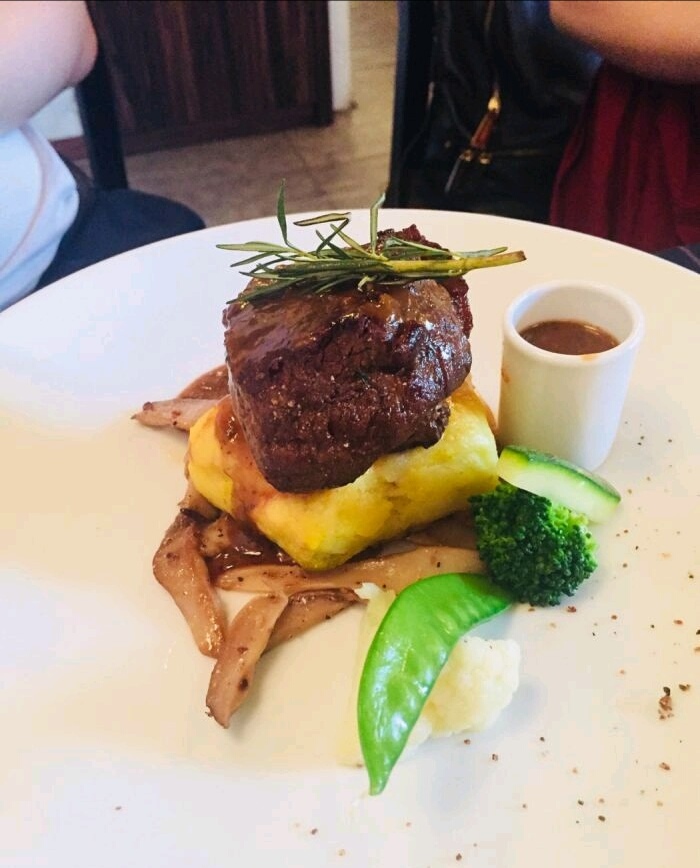 里面的牛排很棒,厚厚的,应该是肉眼牛排,餐厅的门头有点太小了,上去的楼梯很小,只够一个人走上去...里面的牛排很棒,厚厚的,应该是肉眼牛排,餐厅的门头有点太小了,上去的楼梯很小,只够一个人走上去,不是当地人还真的找不到。
