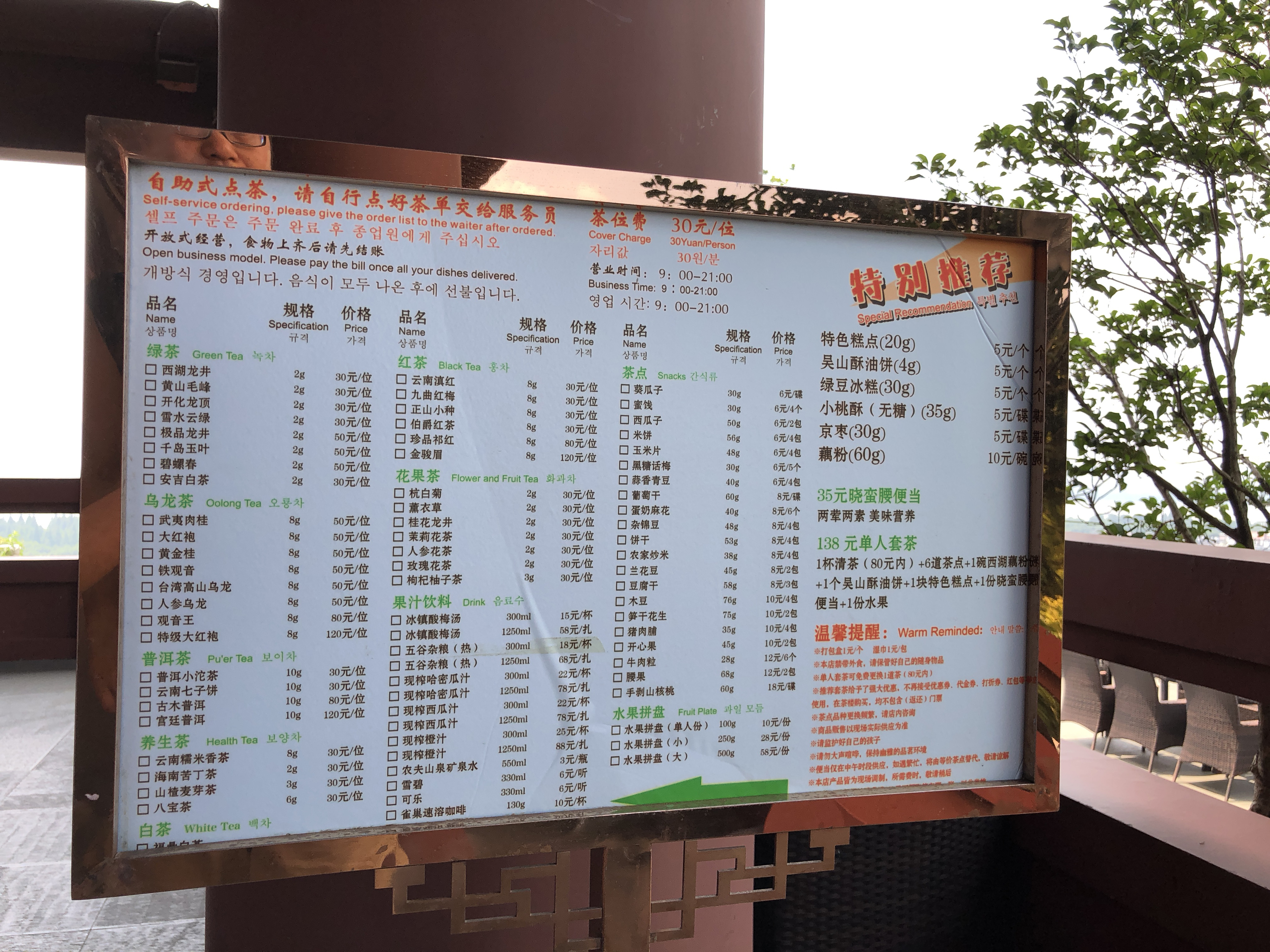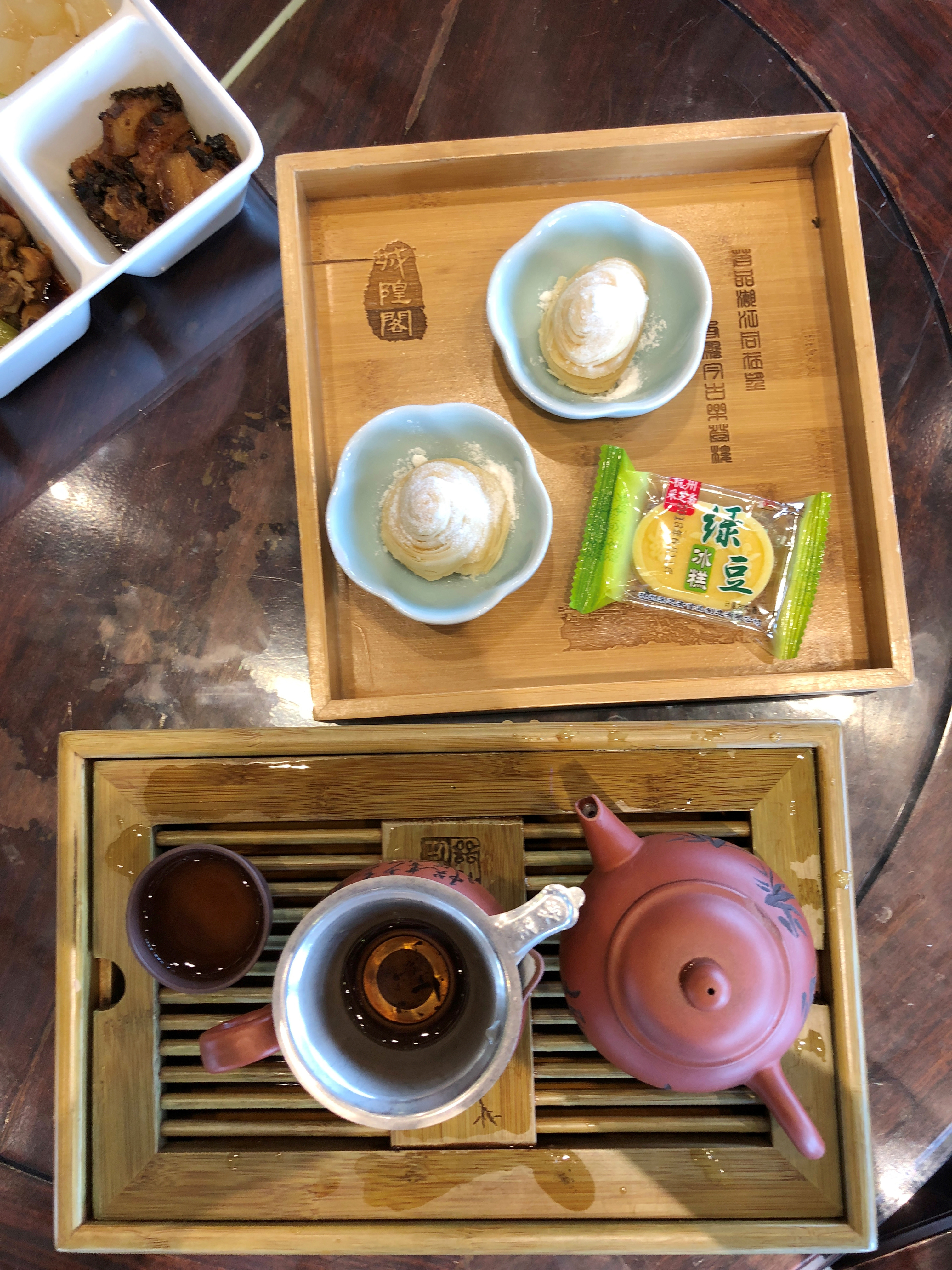 出行前看到的景点之一 去茶楼必须要购买城隍阁门票 这里应该是杭州最高的茶楼 视野景色最佳,西湖一览无余 天气炎热刚好在中国传统的茶楼休息一下 吹吹空调 品品茶 还可以点曲欣赏古筝表演 品茶:普洱小沱茶10g(30元/位)一套茶具+热水壶 糕点:吴山酥油饼、绿豆冰糕(盒子里有一只蚊子。。。[惊恐]) 主食:晓蛮腰便当:两荤两素(35元),口味清淡,但有一根头发 如果没有遇到大桌聚餐吵闹,环境应该算很好
