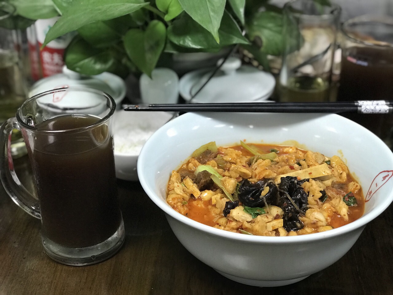 餐前洗手发现保洁阿姨竟然用白毛巾擦地,这样的认真劲怕是全国都数一数二了吧!卤汁凉粉层次丰富