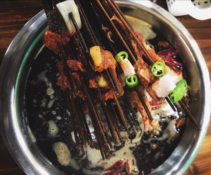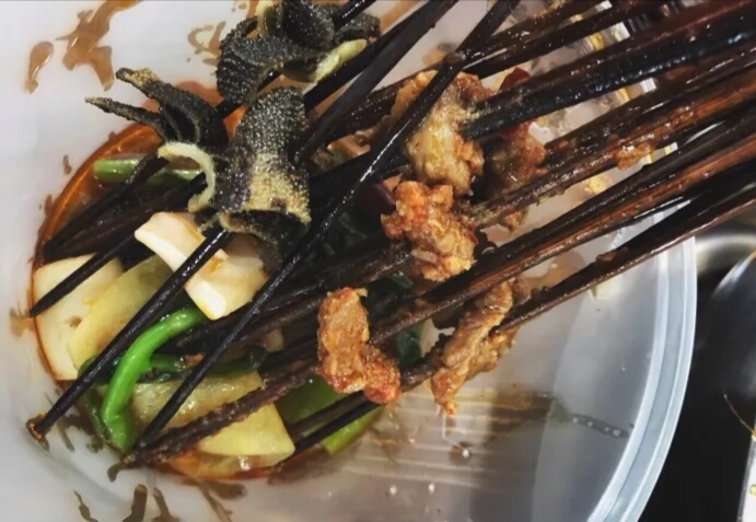 菜品齐全,陈列干净。锅里面你可以煮串串也可以倒入牛杂,一锅两吃。红锅颜色虽然看着暗沉,但是下锅后的食物非常入味,香辣俱全,越到后面越辣。推荐牛肉和掌中宝,实在太香啦,一个香嫩,一个香脆。很喜欢的一家店,来成都不要错过。
