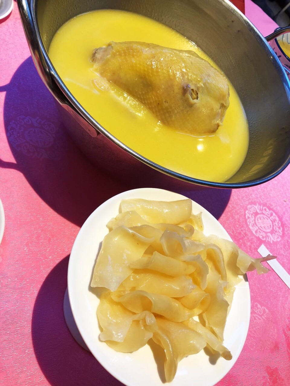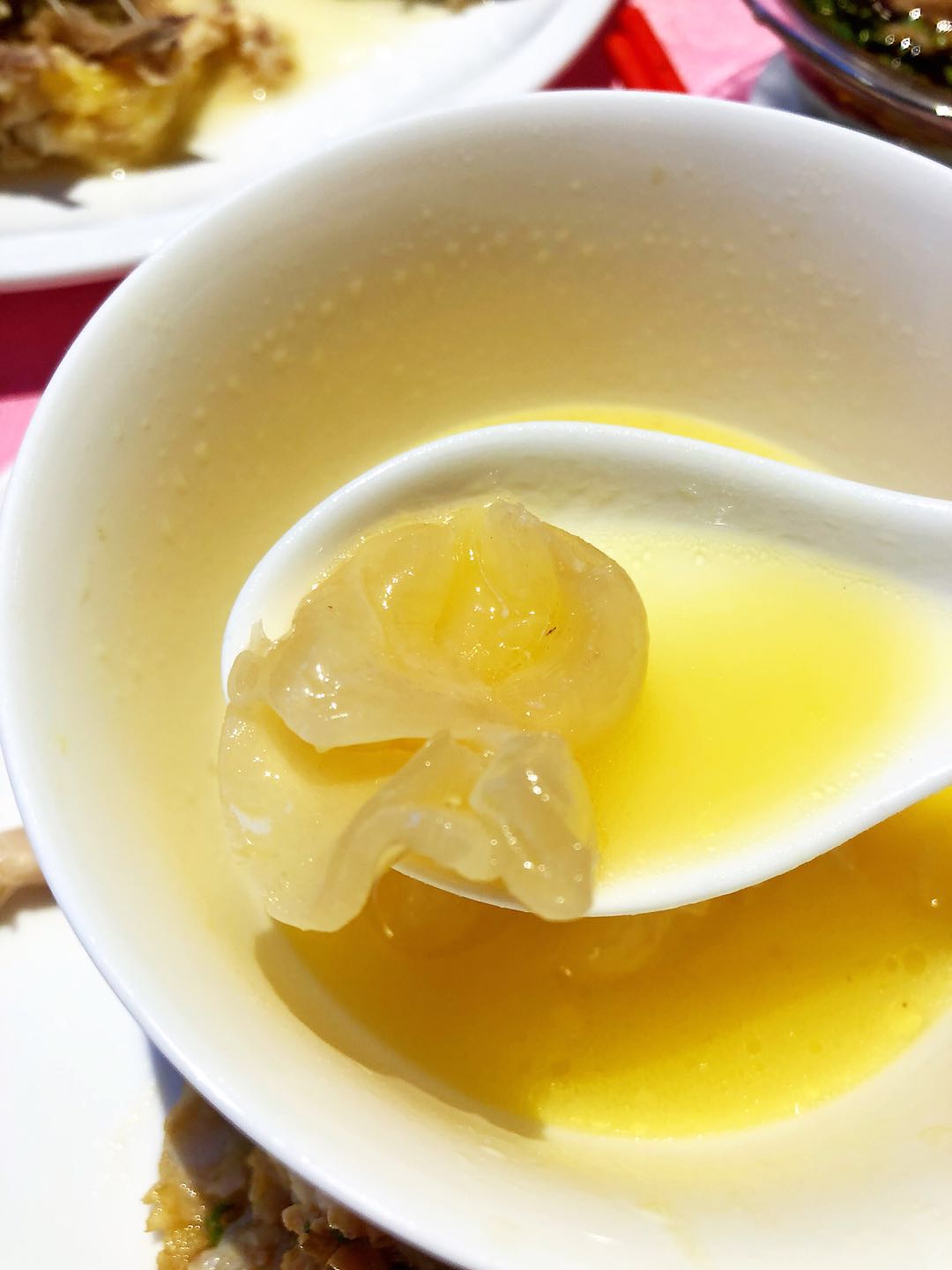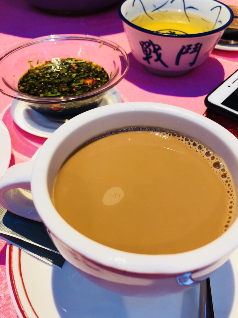 非常难定的一家店,晚市都要提前一个月预定,就餐时间还卡的死死的,一定要在限定时间内吃完,无奈小伙伴一定要吃这家。 也不知道这家店为什么会红火成这个样子,环境也就非常港式的装饰,并没有特别特殊的地方。这版没有啤酒杯,啤酒倒在碗里喝,碗非常特殊,碗底有个胜字。 奶冻非常喜欢,十分的正宗,和自己去广州的时候吃的甜品相差无异了。奶茶一般性,没有什么很特色的地方。 第一道菜,【椒盐牛蛙】我到很好,夏天吃这种炸物也不会觉得特别油腻,肉质很嫩,味道也很鲜美,除了量非常少,没啥毛病。锅子端上来之后,服务员会给在座的一人成一碗汤,服务超级好,鸡也会给你拆开。花胶味道不错,没有腥气,鸡汤味道很美。 【炸玉米】看着推荐菜里面大家都点了这个,要了一份,味道真是般般,也不知道为啥大家伙要推荐。 【牛肉船】卖相好,肉质也很嫩,其实上面也没几片肉,但是感觉自己吃掉一艘船。 【斑节虾】服务员会给你烫熟了,一个个帮你剥好了给你吃,服务好到令人惊艳。 【杨枝甘露】饭后来一晚甜品是最好的,味道很浓郁,已经胜过了外面甜品店的水准。 整场服务太过于周到,以至于我们吃的真的很快,1个小时多一点就吃光了所有,也吃的非常饱足,可能是时间限定的关系,服务员一个劲儿的给我们涮。整体上来说都不错,不过貌似没有以前好吃了,有一点倒是和以前一样,除了贵没毛病。