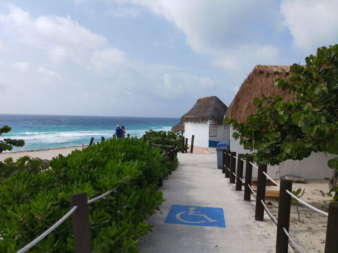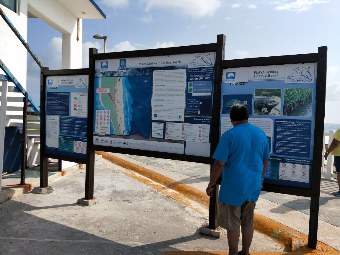 海豚海滩是酒店区唯一的一个公共海滩,因为酒店区里面的酒店基本上都有自己的海滩,所以过来公共海滩的人反而会比酒店里面的海滩更少人。 就位于酒店区的中南部位置,坐r1r2都可以到的,公共海滩区域还是蛮大的,而且这边的景色真的是很好,加勒比海真的很美,蓝的绿的,透明的……海风是对岸的南美的味道。 公共海滩是有洗浴区跟洗手间的,下面也有免费的遮阳伞,但是没有桌椅,可以直接下去游泳的,这里有救生员,当然更多见的就是这边的蜥蜴。
