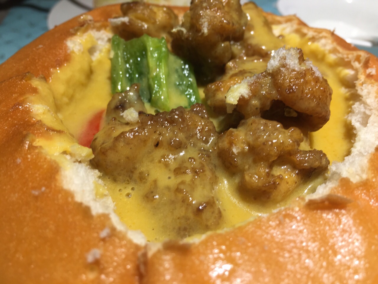 点了没桌必点的咖喱面包鸡、香菜牛尾、梅子排骨,主食店了云吞面,饮品点了冻奶茶。总体来说,没有雷区