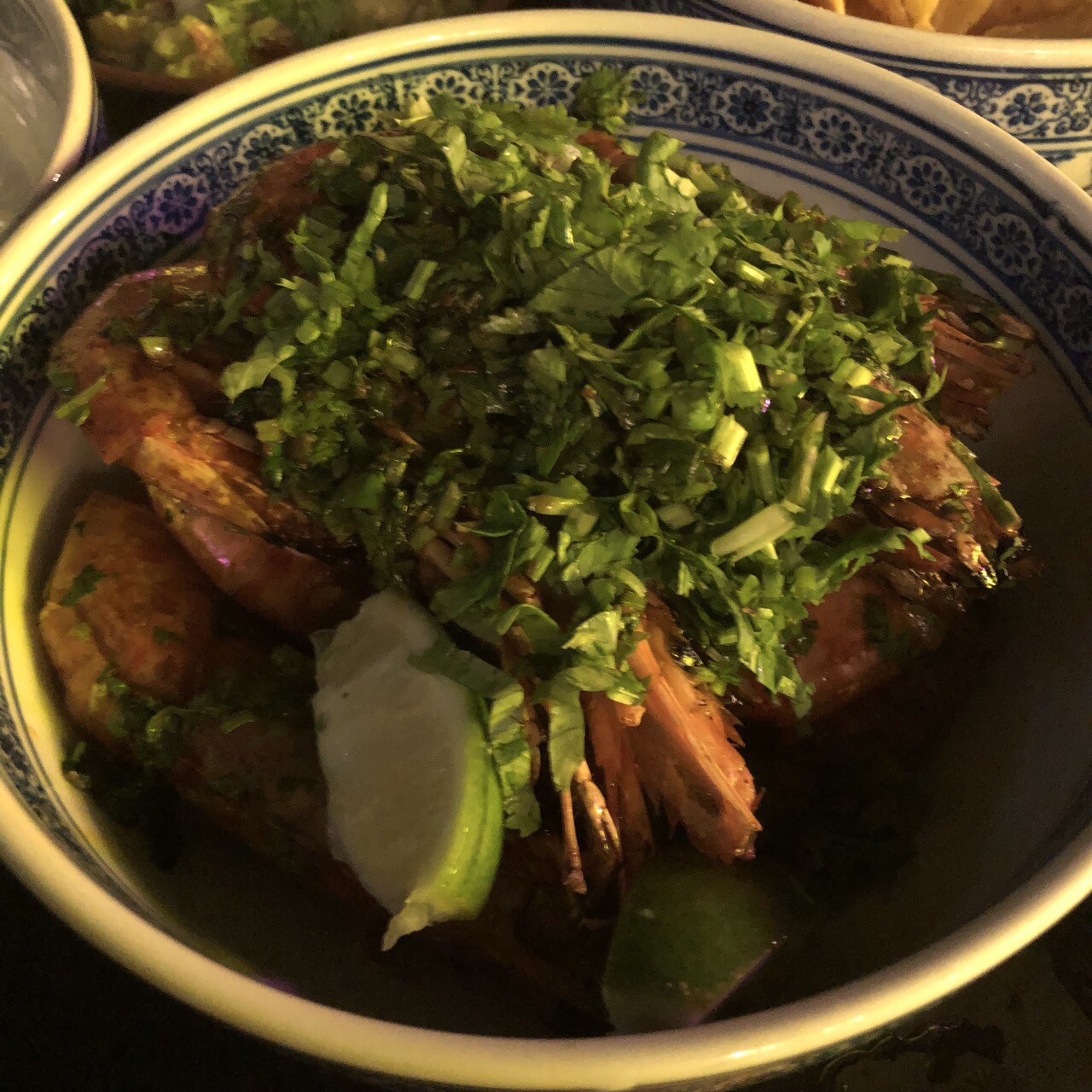 要了三个菜 小份的牛油果酱,大屁股烤虾和牛排taco,味道不错,坐在室外挺凉快的。