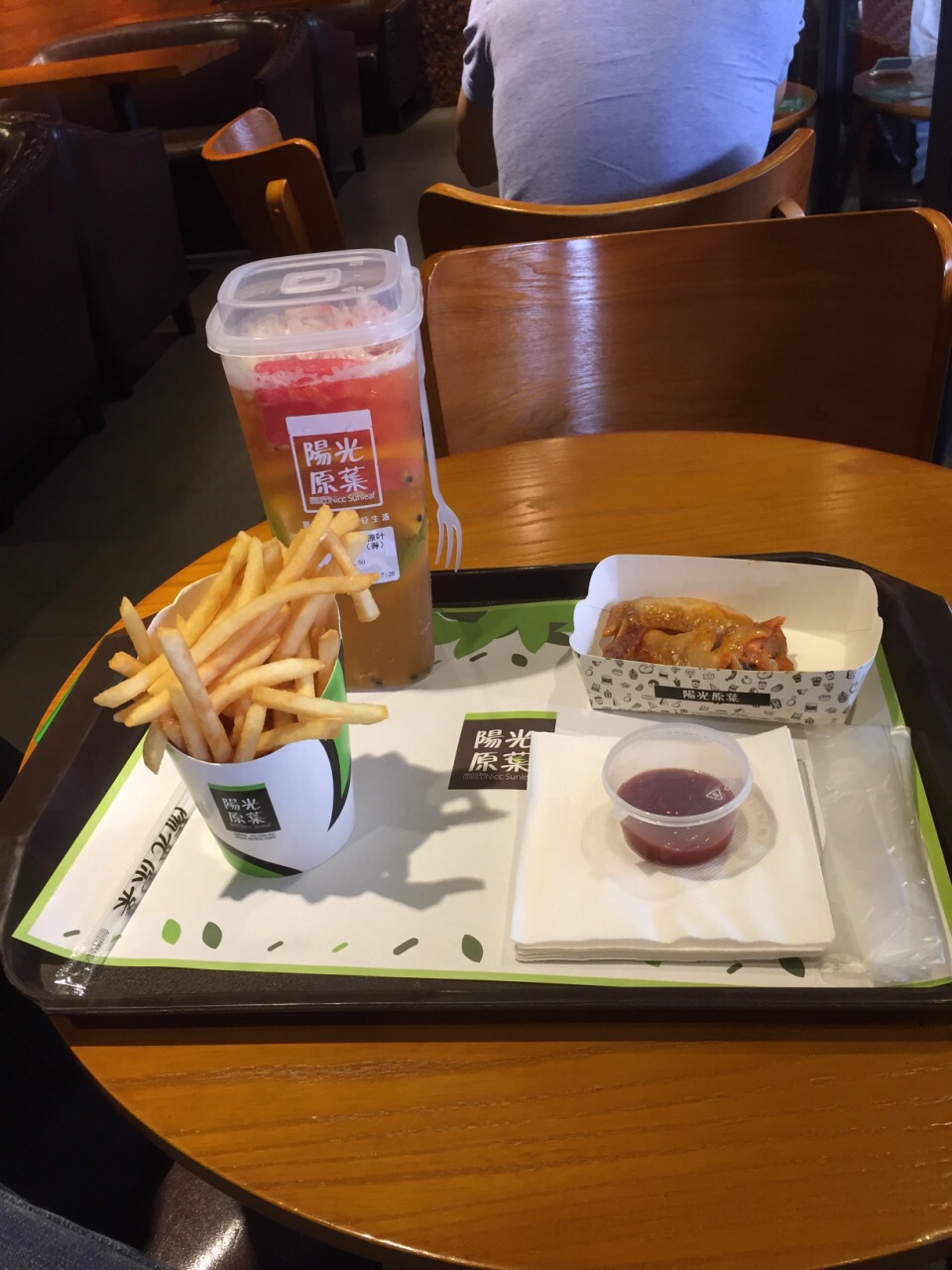 他们推荐了水果茶套餐,试过只是一般,而且近40元的价格算是高消费经过时看见这店的生意不错,就进去看看。进去才知道还有二楼和三楼,而且环境挺不错,我也可以找个有电源插座的位子为手机充电。他们推荐了水果茶套餐,试过只是一般,而且近40元的价格算是高消费。