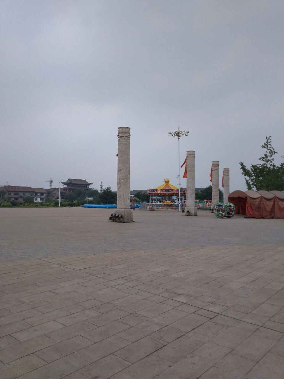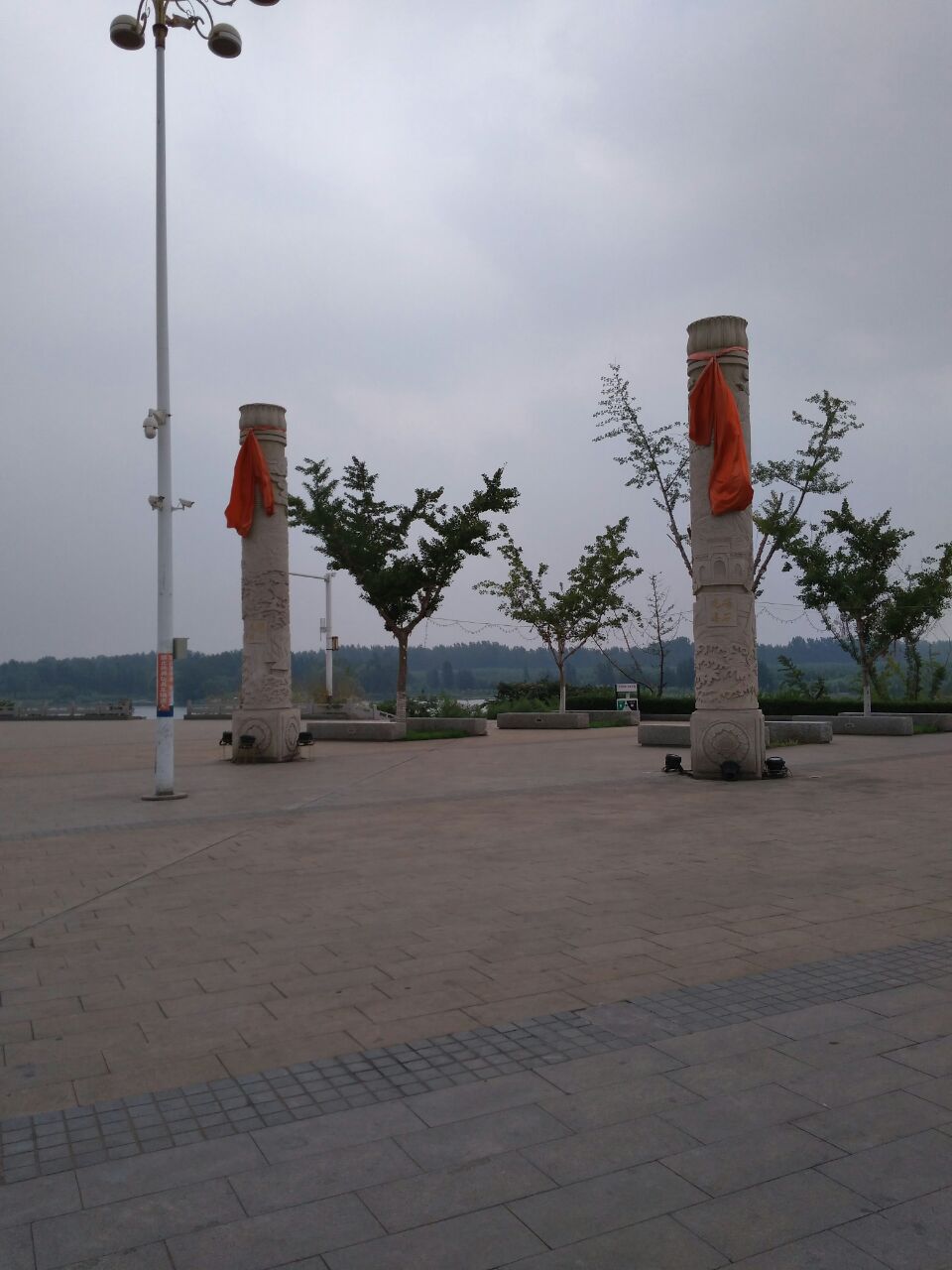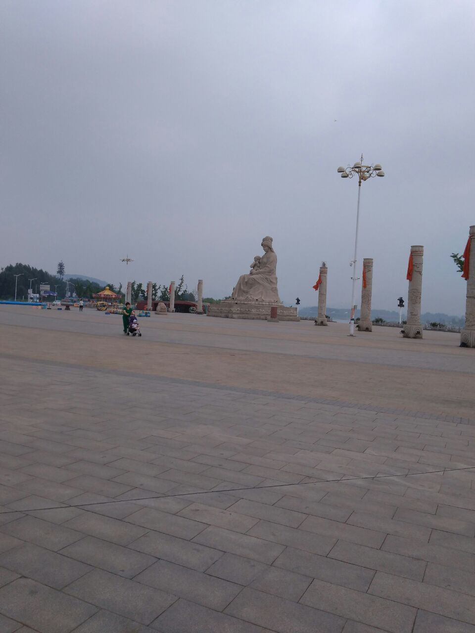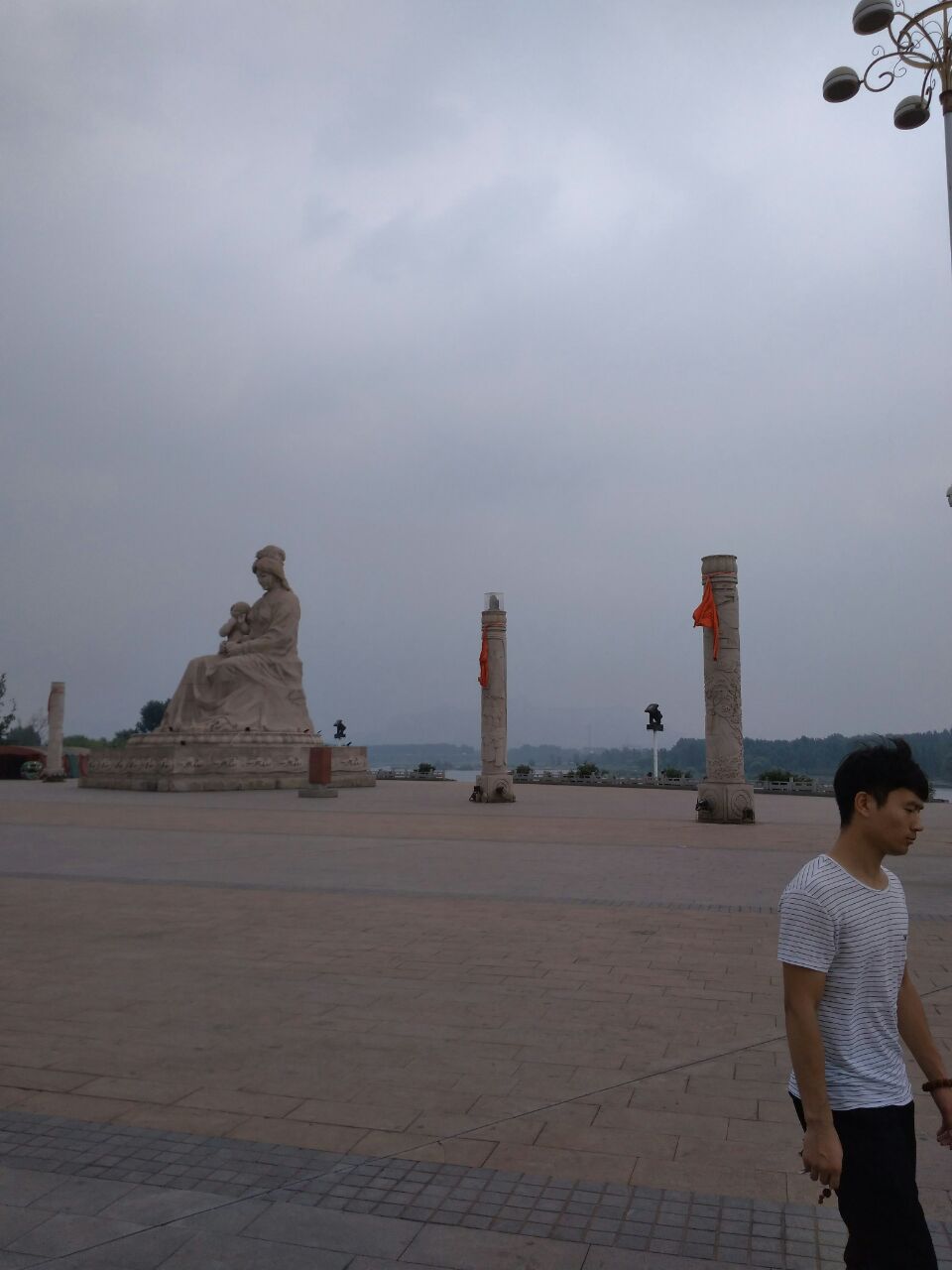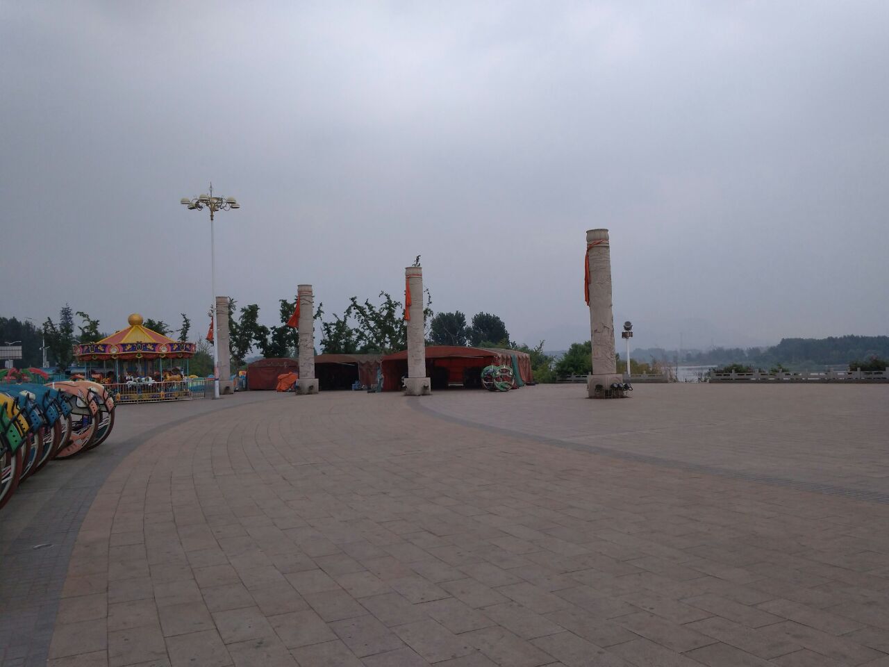 从滦州古城一路到底就看到滦河母亲雕塑了。地方不大却叫母亲广场,这个也够牛XX的。 整个所谓广场,雕塑背对着滦河。面朝着新建的大路。广场上看起来灰尘不少。雕塑边上有一个卖饮料的小摊子。这里不要门票。站在广场上可以看到滦州古城一个小角落。