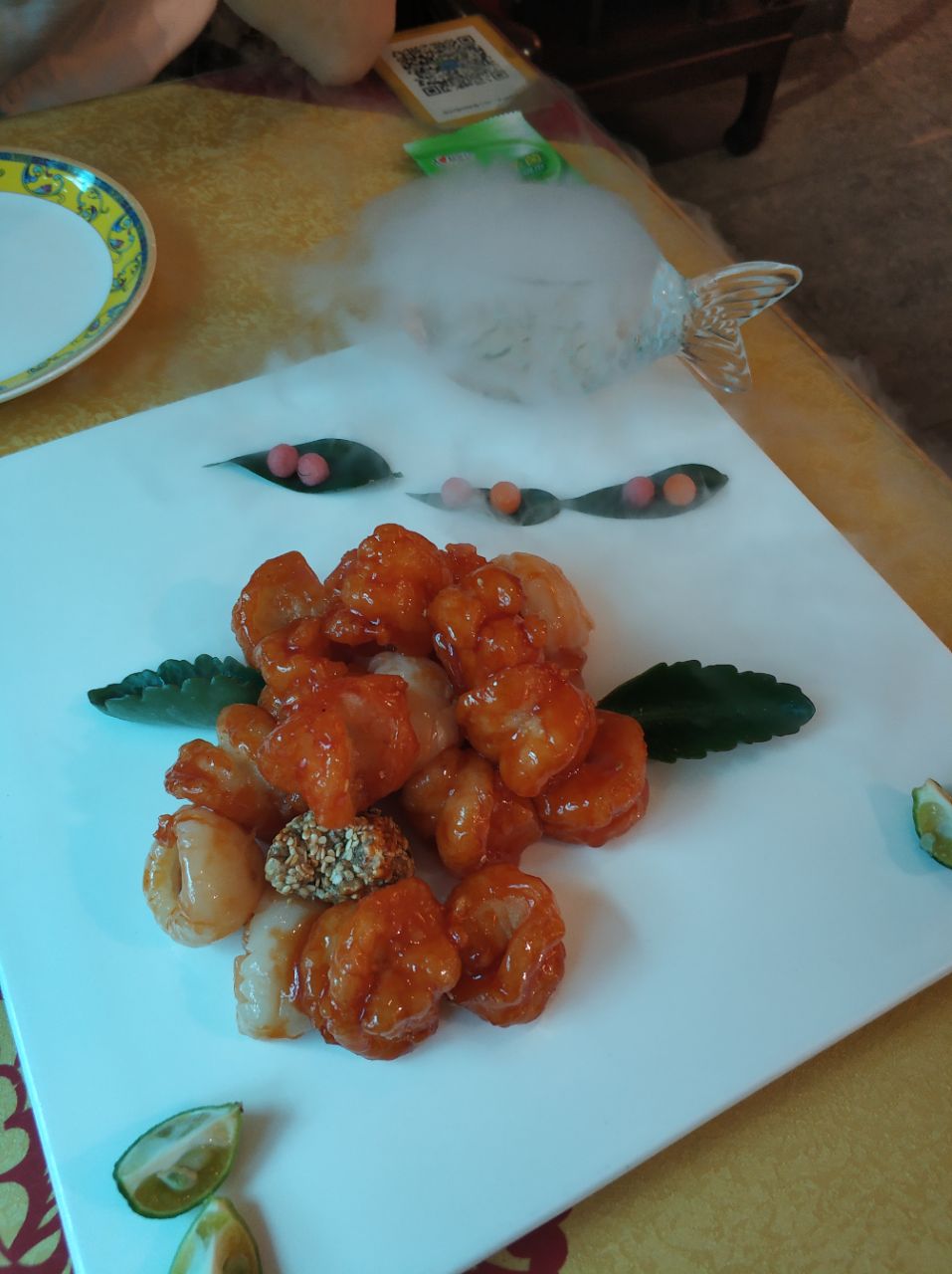 其实人家做的还算不错,水果和虾的搭配本来是很和谐的,主要是失败在虾球上,过于粘牙,口感就不是很好了