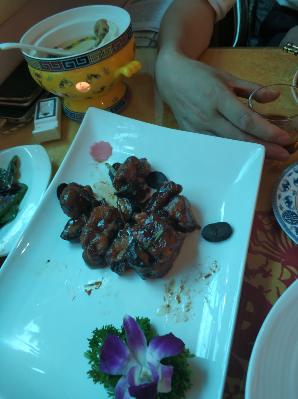 隐藏在琉璃厂的私房小馆,位置不算太偏,跟着导航挺容易就能找到。 小院其实就是住家改造的,目测应该是一个四合院(或是叫大杂院)的半拉前院含西厢房和正房,一共没几张桌子,要是赶上饭点儿,估计位子不怎么好定。 小院的环境不错,经过了精心的设计,到处郁郁葱葱的。一进门两只八哥迎客,学说话学的特好,提升了很多B格。 菜品方面还是体现了私房菜的特点,看得出来每一道菜都经过了设计,在色,型上做足了功夫。味道嘛,,,,见仁见智。反正每道菜可以尝出来没有加太多味精和其它增味剂。 一圈吃下来,给我留下最深印象的,是他家的发面大饼,葱油的。一般我不喜欢吃厚厚的发面大饼,总觉着太干,但他家引入了葱油的概念,饼里裹挟着葱花,加上有盐的调味,一下子让干而无味的大饼生动起来,确实值得一尝。 相较之下,其它菜品就很一般了。荔枝虾球作为排名第一的推荐菜,真心一般。其实人家做的还算不错,水果和虾的搭配本来是很和谐的,主要是失败在虾球上,过于粘牙,口感就不是很好了。松茸珊瑚养生汤,这道考验刀功技巧的菜,可以看出大师傅的功底,比大店的师傅还是略差一些。 总之,小院环境不错,适合小聚。由于地方小,空间有限,所以相对私密性一般。正房有个包间,一张大桌子,但是半开放的,私密性也不强。