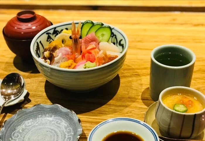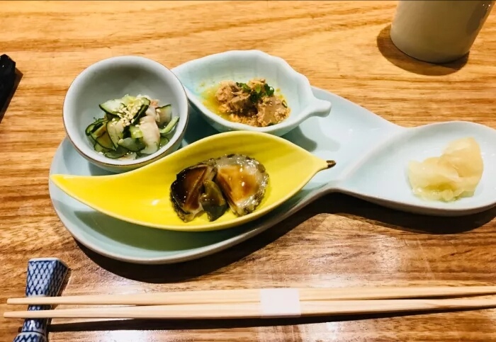提前预约了午市套餐,里面包括星鳗、海鲜饭和寿司,前者适合不吃生食的朋友,否则强烈推荐海鲜饭哦。 套餐依次包括前菜、主餐、茶碗蒸、汤品、甜品,精致好吃。前菜里的鱼肝非常好吃,海鲜饭特别惊艳,应该说是我吃过最最丰富的海鲜饭了,食材非常新鲜。
