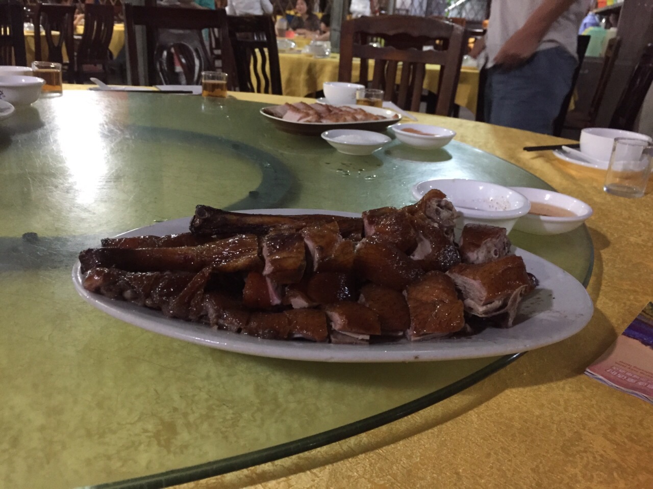 又来烧鹅妹了,这次是去完百万葵园之后过来的,吃饭的人还是很多,门前停满了车,加上现在地铁站就在附近,人明显比之前多了,还好这里的地方够大位置够多。农庄环境肯定是一般的,但这里的东西胜在真材实料而且价格不贵。一只烧鹅178,能吃得出来是木烧的,皮脆肉厚;白切鸡虽然卖相一般般,白白的好像味道不够,但没想到吃起来也不错。豆腐和咸鱼茄子煲虽然是大路菜,但这家做得还是给我们有惊艳的感觉。