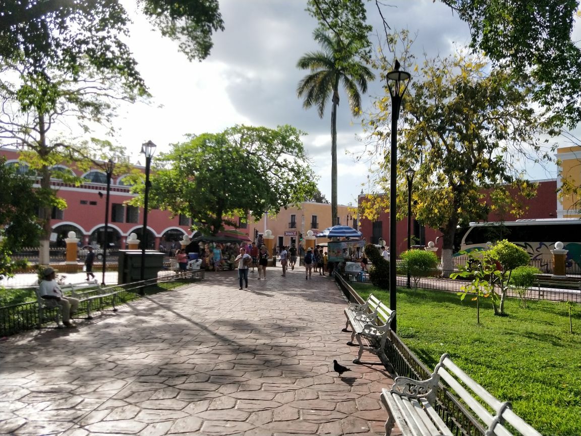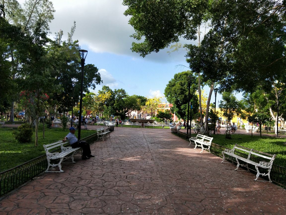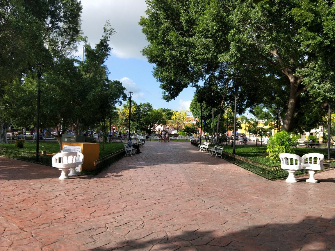 ...公园,离教堂那边只隔着一条马路,公园里面并不是特别的大中央有一个中心的水池,的确是是西班牙风格
