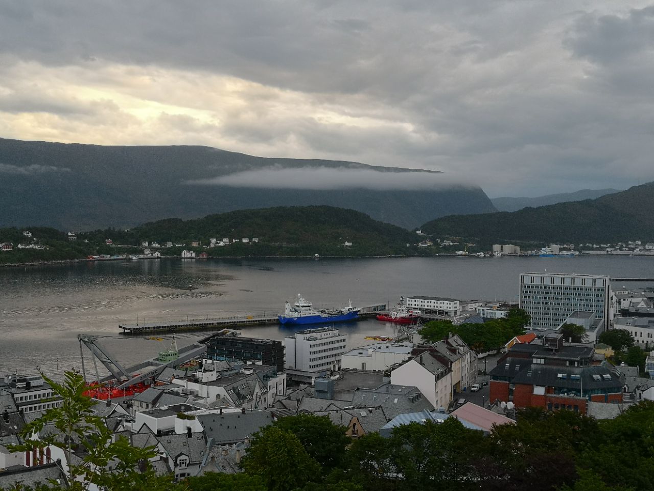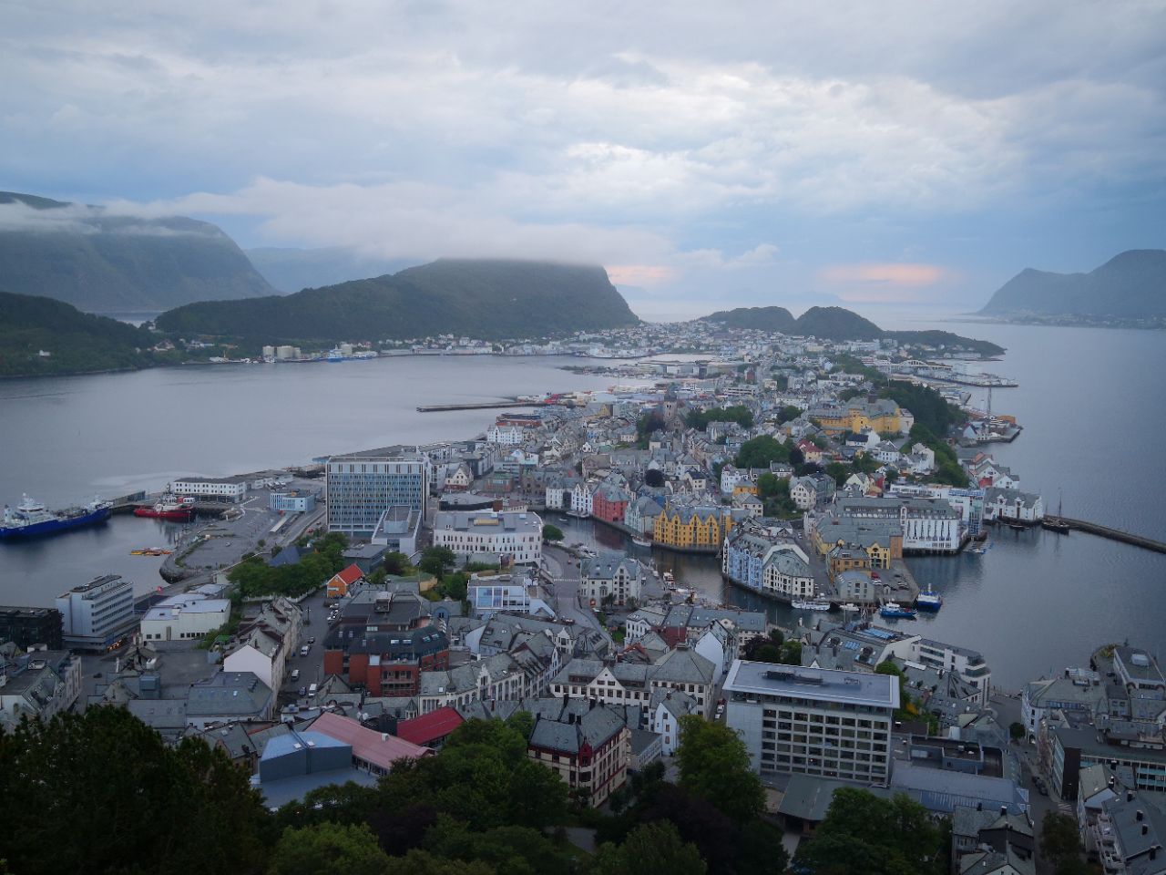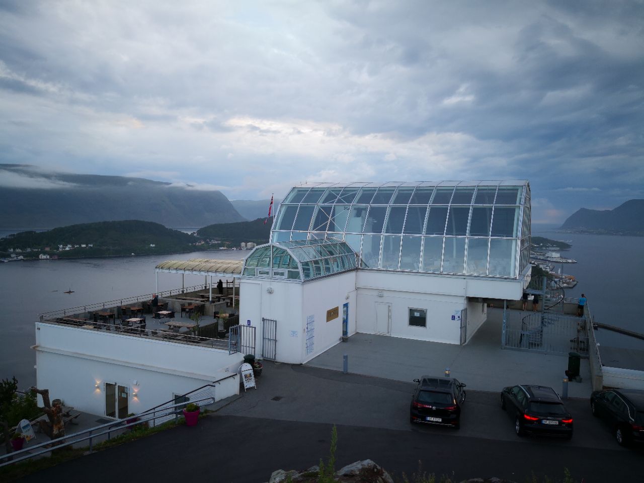 阿克拉斯观景台是奥勒松最有名的景点之一,到的第一天导游就在朋友圈中晒了在观景台拍的照片,也有团友上了观景台。第二天晚餐后去了观景台,一共418个台阶,不断有数字提醒到了多少个台阶。在不同的高度看奥勒松,有不一样的感觉。到达最高点后发现,最高处居然停着几辆房车,原来有车道可以上山顶。在山顶,又拍摄了照片和录像。上观景台不累,又可以看到别样的风景,值得一游。