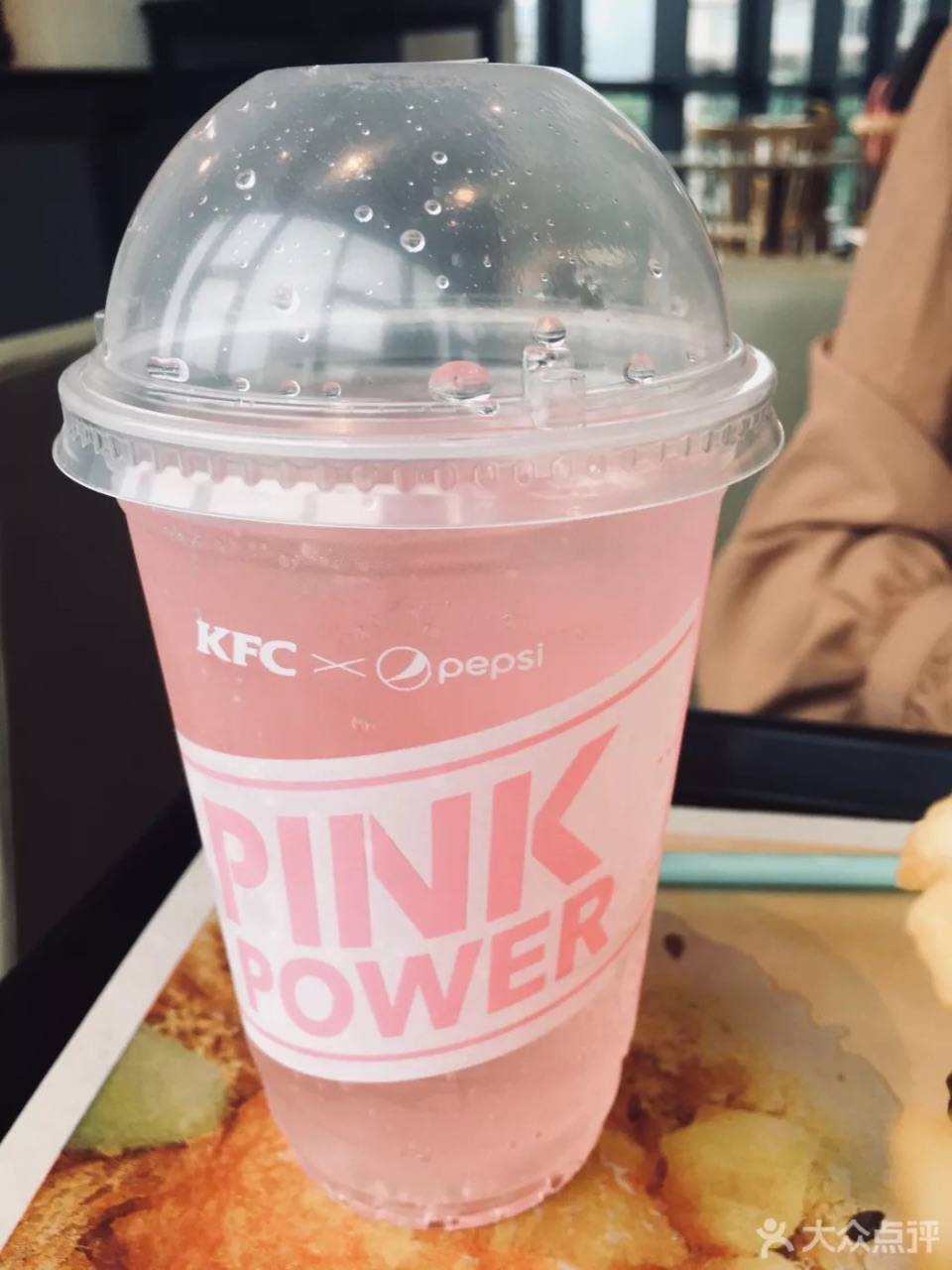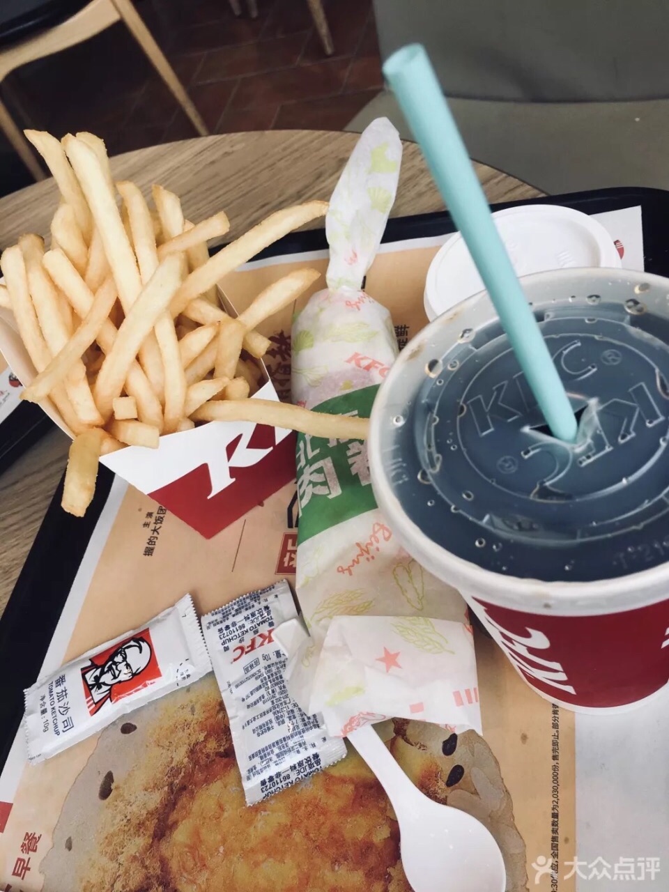 海盐冰淇淋(9):因为它很火,所以来吃吃,我觉得好吃又好看,喜欢哈哈夏天的味道。 土豆泥(5.5):土豆泥磨的很细,上面有黑椒汁,没怎么吃出土豆的味道,很小一个,感觉一般,不是我喜欢的味道。 老北京鸡肉卷,薯条,中可(套餐17)就没什么好说的了,大家都吃过。 粉红百事可乐:其实就是草莓汽水的味道。。