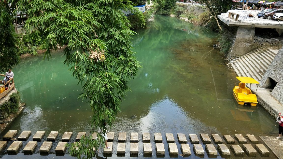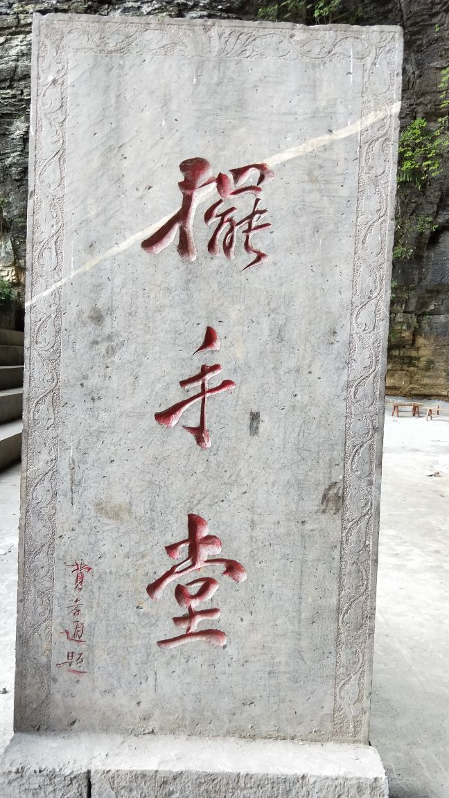 我们是开车自由行路过飞虎洞(免费),看到人多车多就停下来游览,沿石梯进入洞口豁然开朗,凉风习习,气温低了好几度,舒服,土匪窝很大,头顶上岩石,墙壁上一台电视机滚动播放电视《乌龙山剿匪记》,休息了一会下楼梯,向前走一百米看到石桥和溶洞,坐船进溶洞是要收费的,我们浏览了一下风景继续前行