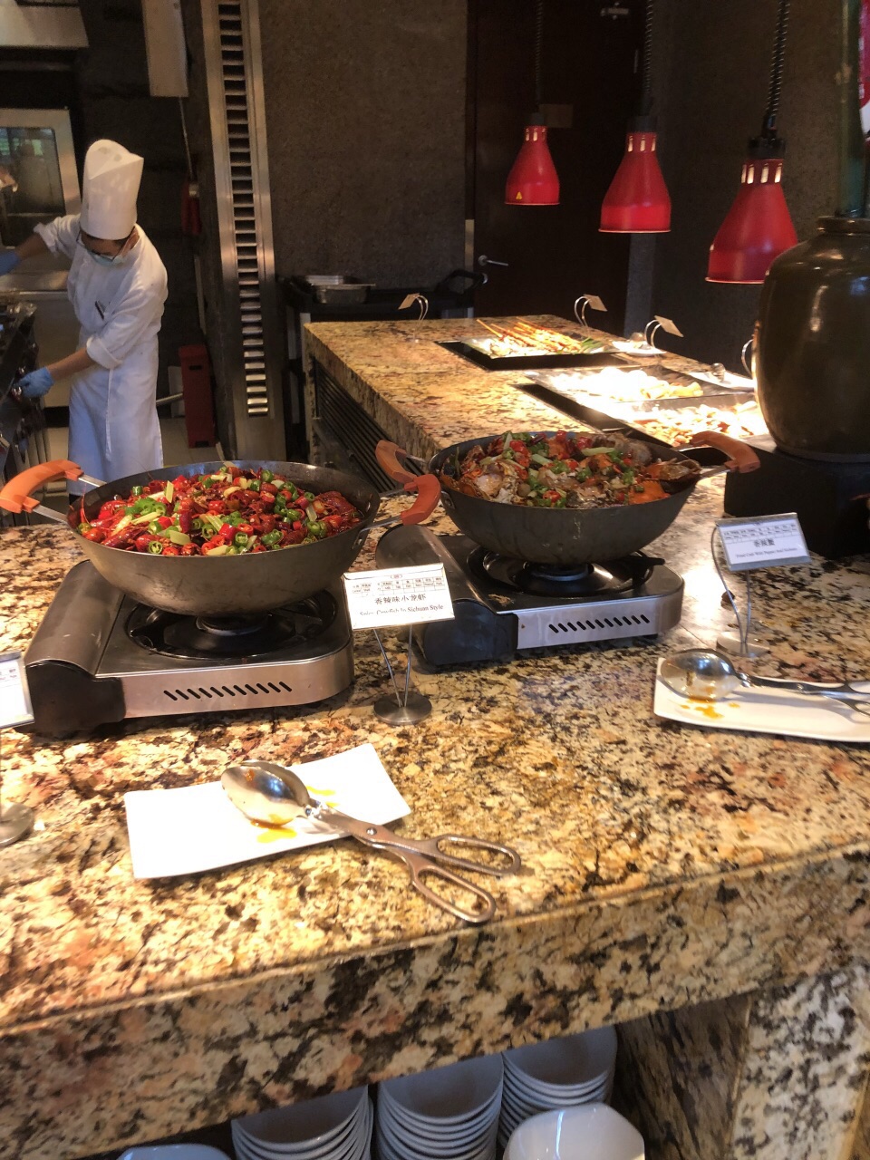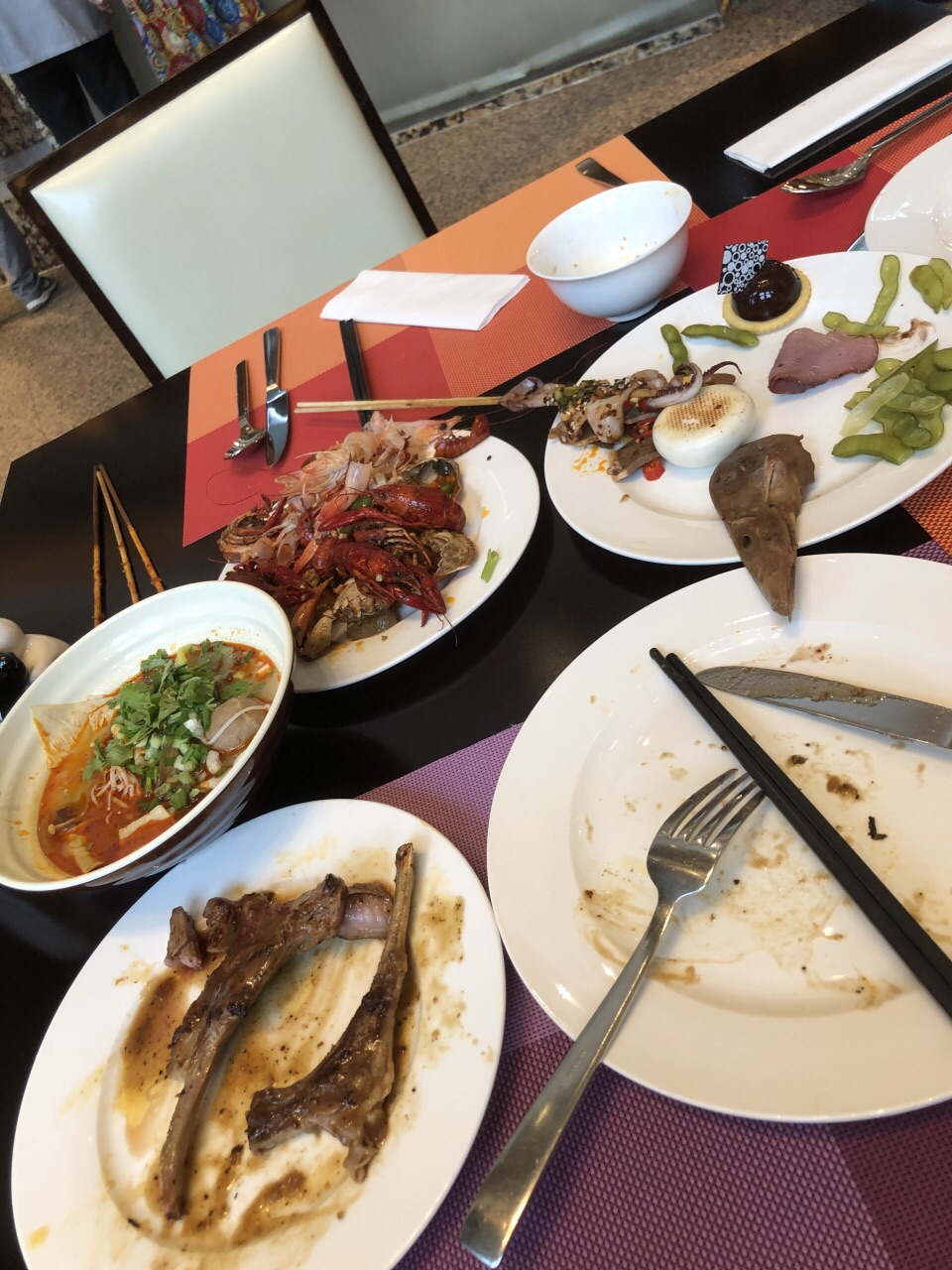 菜品还是很多,牛排羊排现煎,味道也好,麻辣小龙虾,炒蟹味道有点清淡,总体来说符合大众口味,下次...早餐晚餐都在这里吃的,菜品还是很多,牛排羊排现煎,味道也好,麻辣小龙虾,炒蟹味道有点清淡,总体来说符合大众口味,下次还是会来