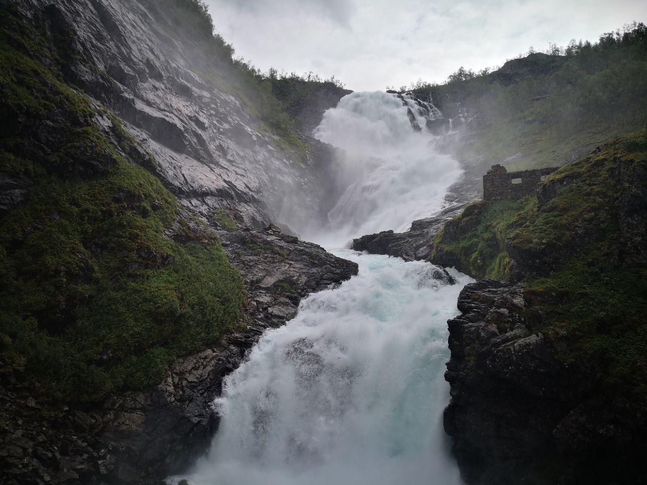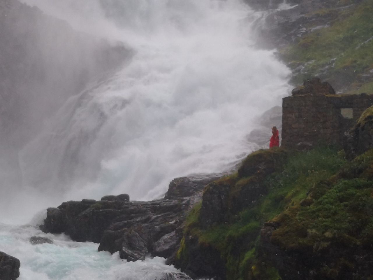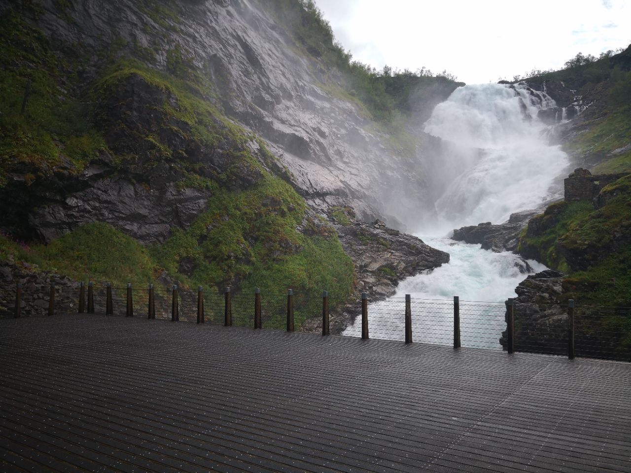上午十点三刻到佛莱姆小镇,下车即到售票处,买到了十二点二十分的票。在导游指挥下,全体团友坐在7号车厢,到中间停车的时候发现导游的安排有道理,我们离瀑布最近。下车后被飞流而下的瀑布所震撼,过一分钟左右,音乐响起,两名女性舞者轮流表演,场面很是别致。今天的小火车之旅,自己有了一种不一样的旅行体验。