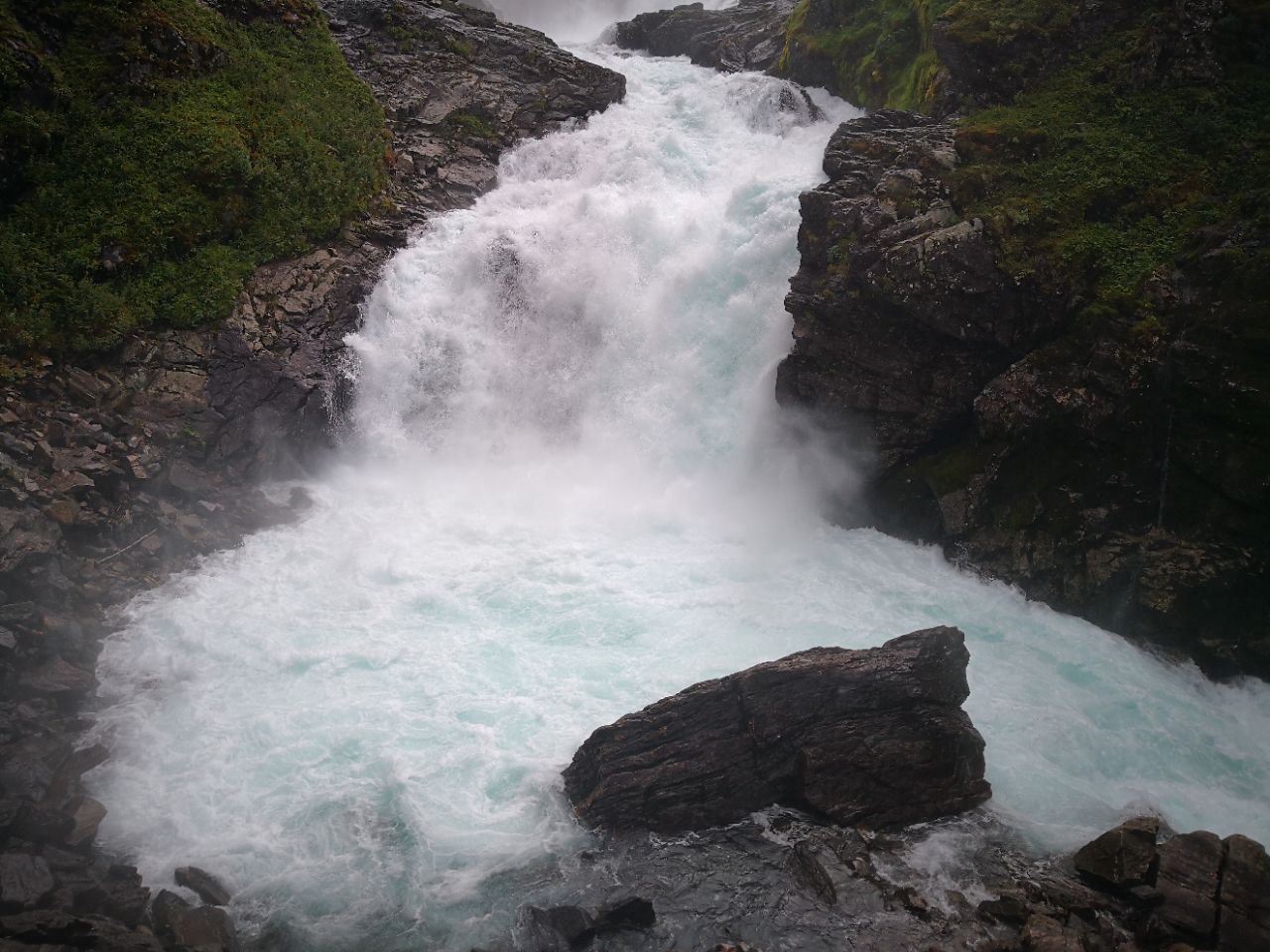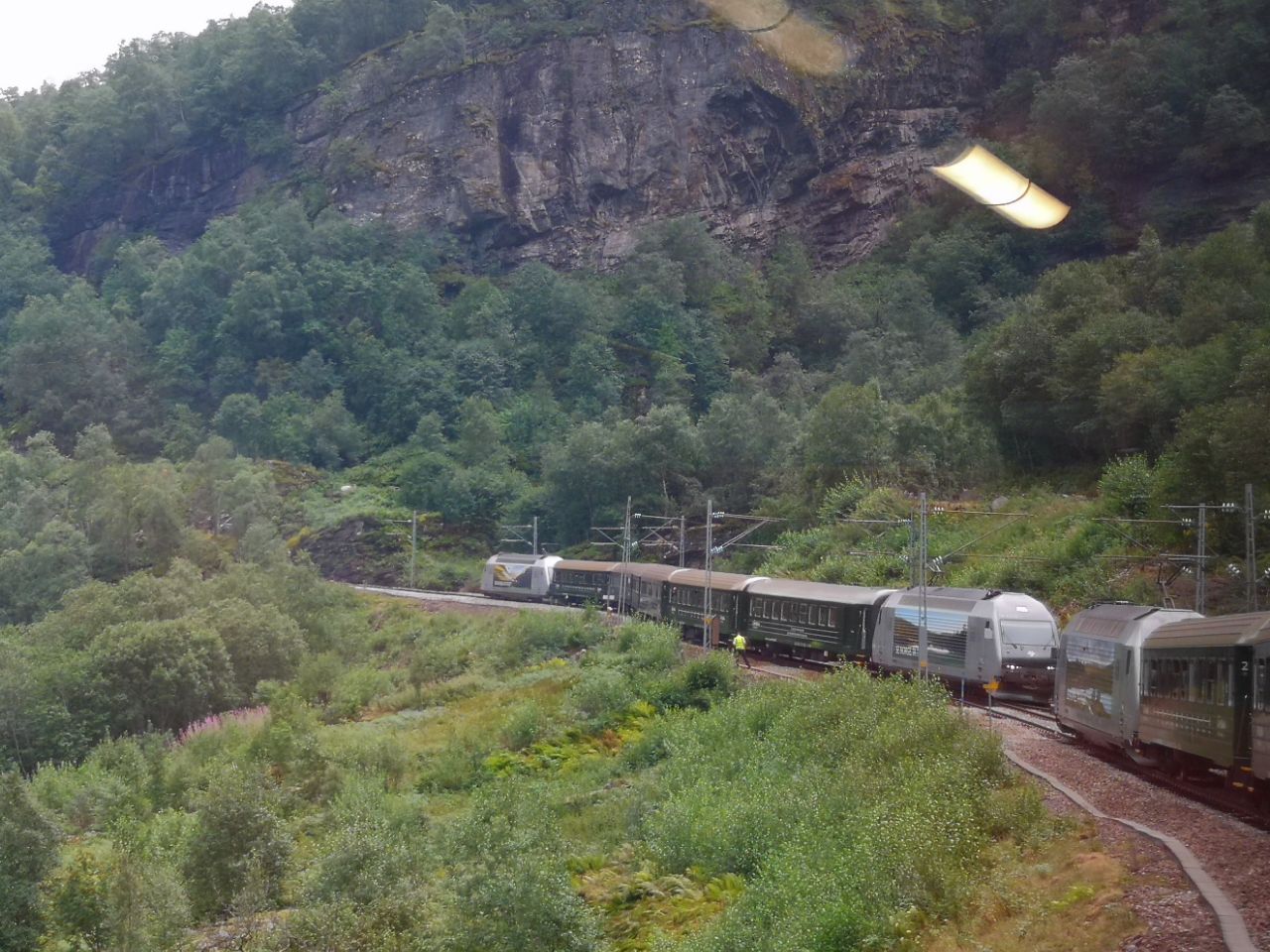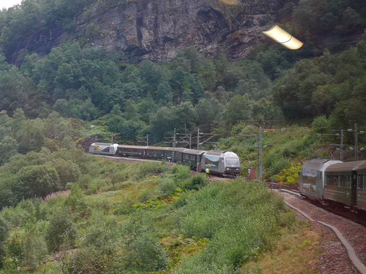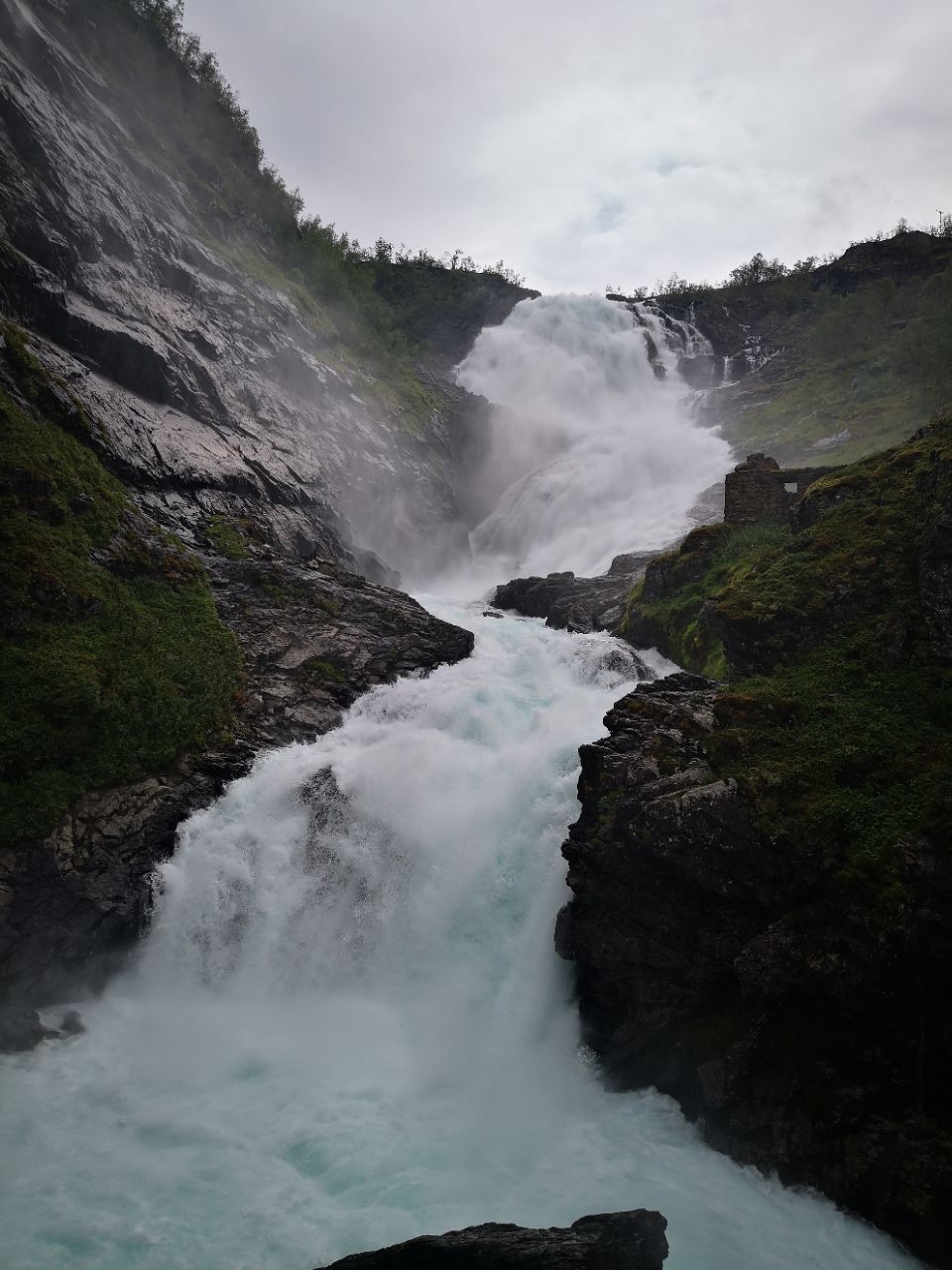 上午十点三刻到佛莱姆小镇,下车即到售票处,买到了十二点二十分的票。在导游指挥下,全体团友坐在7号车厢,到中间停车的时候发现导游的安排有道理,我们离瀑布最近。下车后被飞流而下的瀑布所震撼,过一分钟左右,音乐响起,两名女性舞者轮流表演,场面很是别致。今天的小火车之旅,自己有了一种不一样的旅行体验。