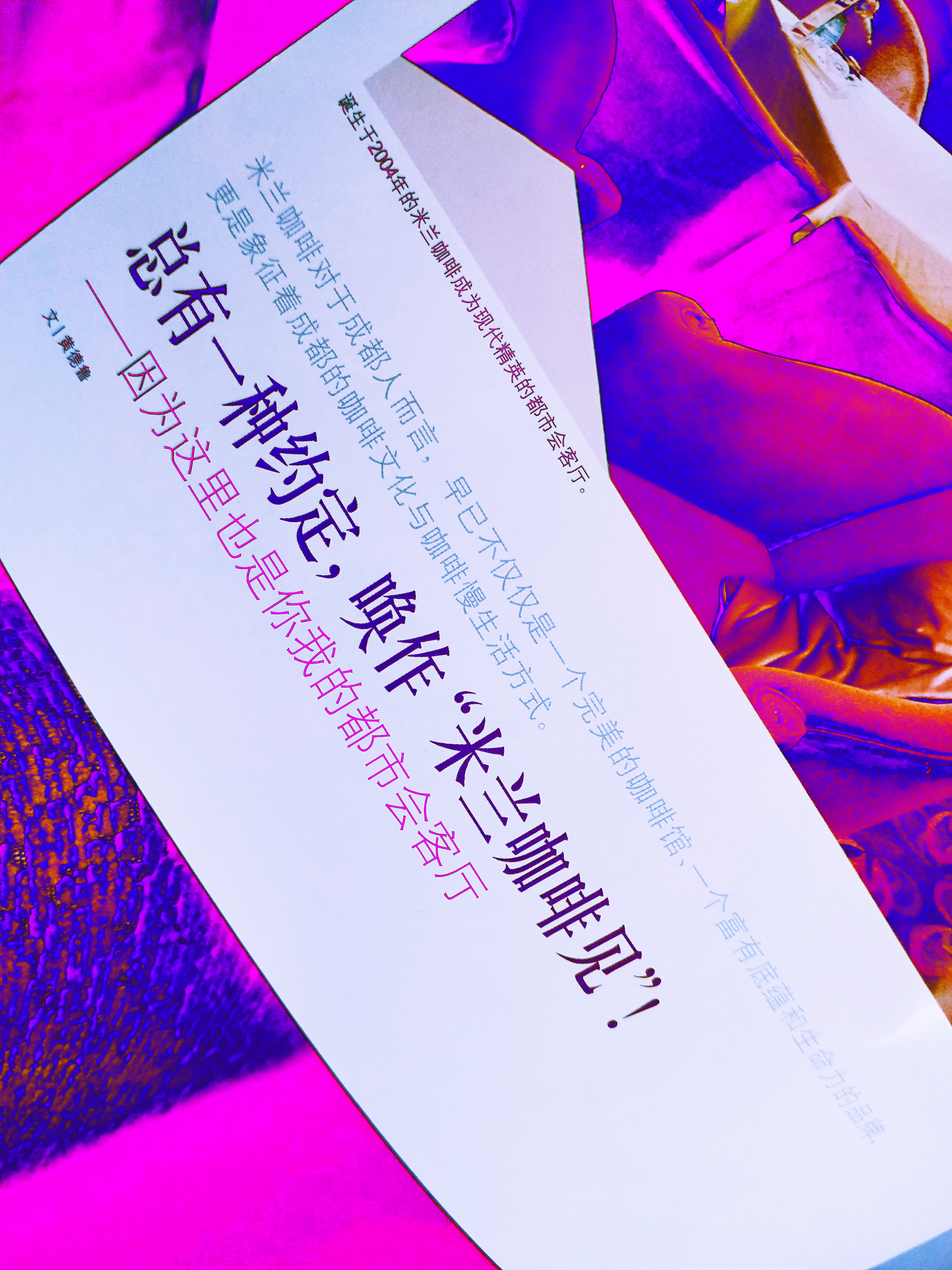 周末,过来鹭岛体验酒店,恰逢下雨天。。。 下来闲散漫步,发现了米兰咖啡音乐酒吧,据说成都的每一家米兰咖啡都有自己的故事。 有一种生活叫“咖啡时光”,相信很多朋友都喜欢咖啡的慢生活,约上闺蜜或好友,哪怕一个人也可以独自享受生活的静谧与美好。 入口的装饰与整个咖啡的格调诙谐相映,店内提供扫码充电宝,不用担心手机充电的问题。 米兰咖啡鹭岛店,靠窗落座点餐,窗外被雨洗涤过的路面湿漉漉的,可以折射出周围的物景。 一杯柠檬红茶,一份提拉米苏,一杯咖啡,一份海鲜披萨。 丰盛的午餐需要细细品味,不着急,不慌忙,好好享受这美食和大把的安静美好时光。 旁边的架子上摆放着杂志,翻开了解下米兰咖啡的文化,对米兰的印象一直停留在米兰时装周。 安静的玫瑰,慵懒的音乐,舒适的沙发,度过下午美好时光。 这里不止有咖啡,有商务有爱情有格调。 旁边桌三位客人友好的达成协议并愉快的结束洽谈,我无意窥听他们的谈话,在其中一方离开时他们道别说话的声音略大,故而有闻。 朋友间聊天闲谈,情侣间情意绵绵,择一舒缓氛围的咖啡厅,情调的逼格就有了,哈哈。 服务员也很温柔,主动帮忙添加茶水和收拾吃剩的残局。 难得的一次什么都不用想,什么都不问的下午时光,不管天气如何,周末愉快。