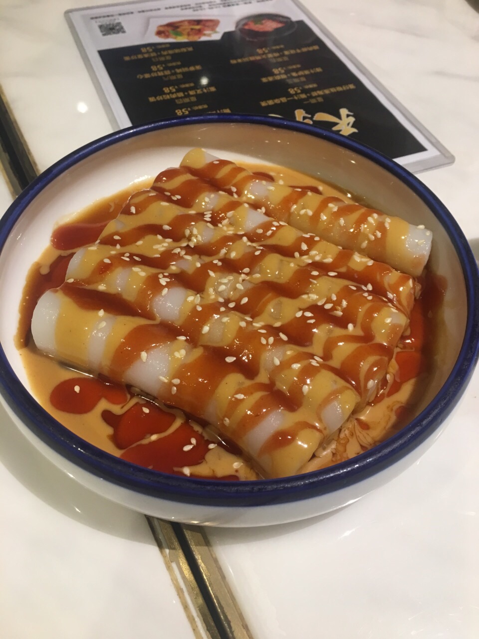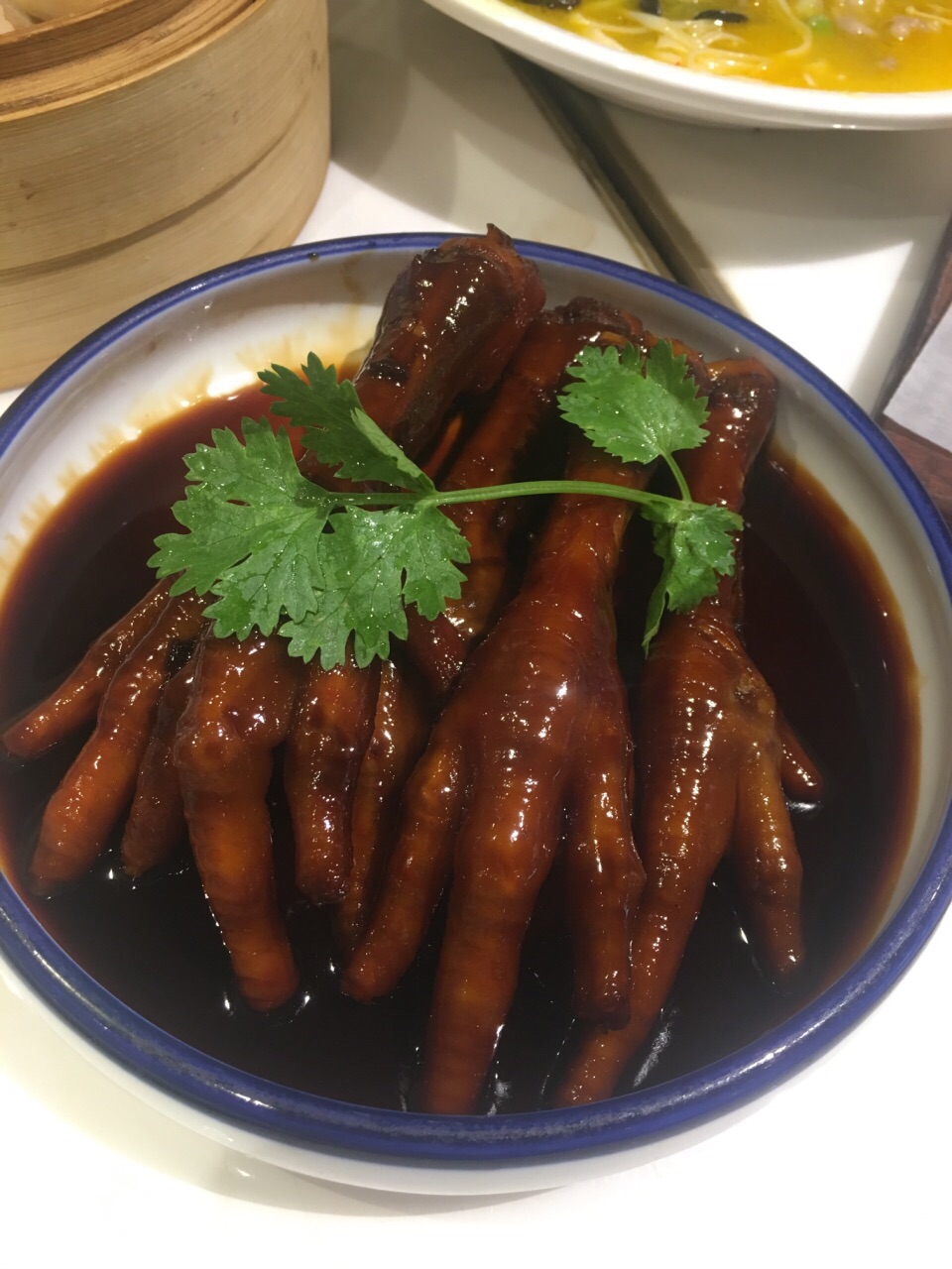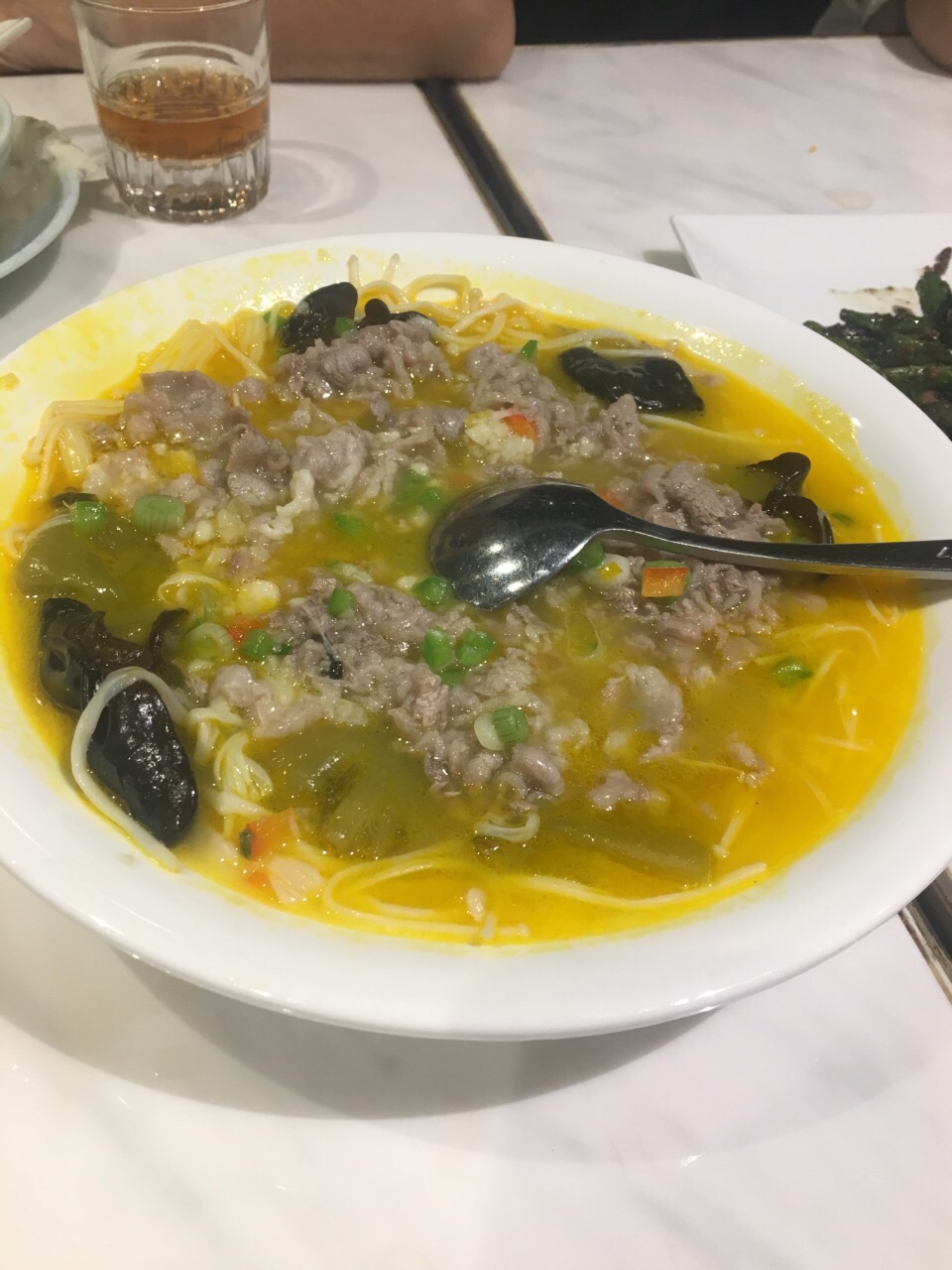 一间以创意点心标识的茶楼,环境挺新,出品也都还不错 啫啫唐生菜:用一个大砂锅上的,很好吃,推荐 脆皮小乳鸽:当时我们点的时候有特价,29块,味道还不错,就是稍微小只点 鲍汁凤爪:去饮茶都习惯点凤爪,这里的鲍汁凤爪也没让我失望 金汤浸肥牛:其实就是酸汤肥牛,有点小辣,很下饭。 其他还点了豉油王炒面、桥底混酱肠粉、猪仔叉烧包、榄菜肉松四季豆,也都还可以