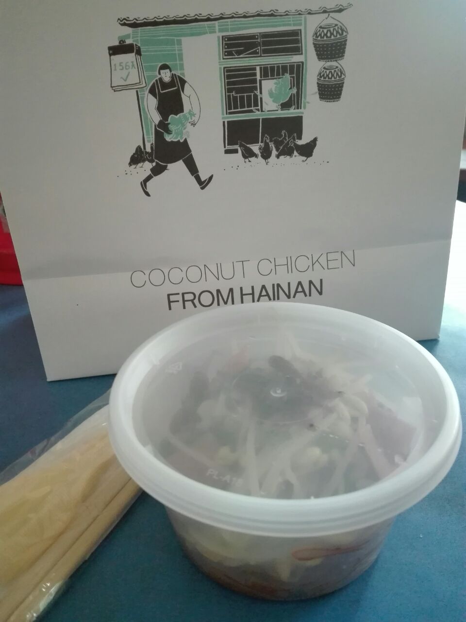网上团购了一个“海南粉”,有空就去试试。店铺在万菱汇三楼,不难找到,装修新净,环境挺好,空间不大,中午吃饭时候,桌椅摆到了店铺外面,还有两三桌客人在等位,赶时间只好要求店员打包带走,加收一元打包费,他们的打包也是蛮高大上的,专门订制的纸袋子,打上“椰客”的logo,简洁美观,里面一碗海南粉,份量不多,但味道很好,不错不错,有机会可以再到店里坐坐~