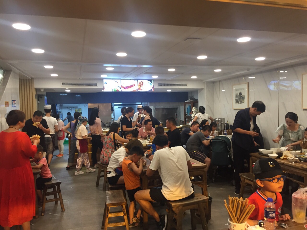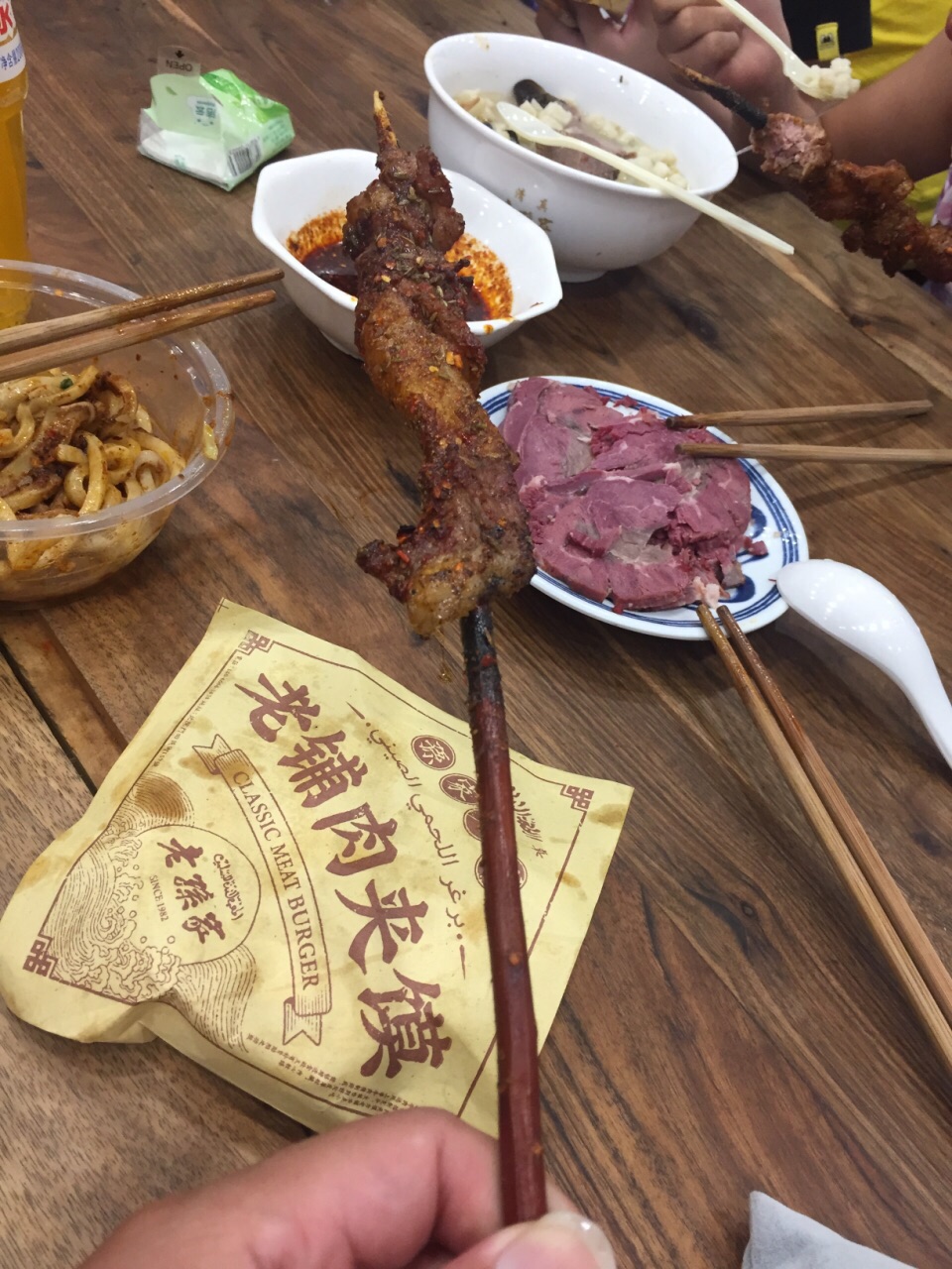 这家店面比较大,而且位置在回民街的入口不远处,晚上9点饿了所以没有怎么选就进了这家店。店内有三层,这个点还是满座。肉加馍内肉很足,但我的口味希望能加点蔬菜;牛肉很香很好吃;羊肉串不膻够味。人多,所以上菜不快。