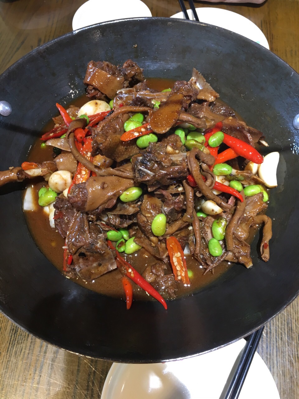 经常去的地方,一到晚餐点,经常需要等位子经常去的地方,一到晚餐点,经常需要等位子。有亲戚来,点了吊锅鸭,嫩藕,嫩香干,还有空心菜和其他小菜,味道还是一如既往的没让人失望,基本吃光,就是可惜,本来还要了个跳舞虾的,结果没点上,还会再去的,回头客多多。
