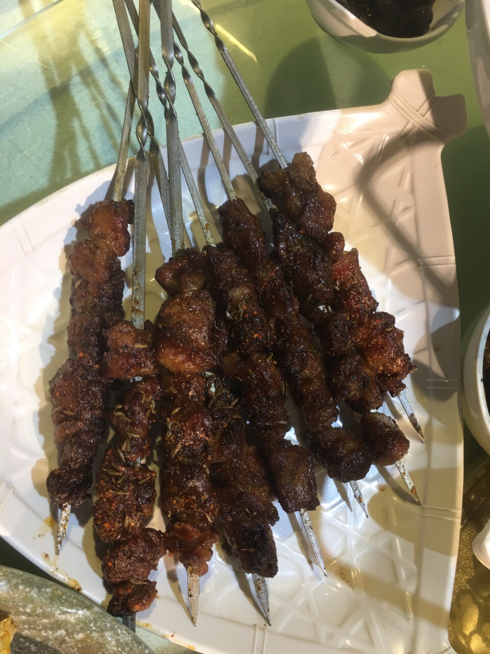 烤茄子是网友 们推荐的,也点了,果然味道好极了。羊肉很新鲜,串的味道也不错
